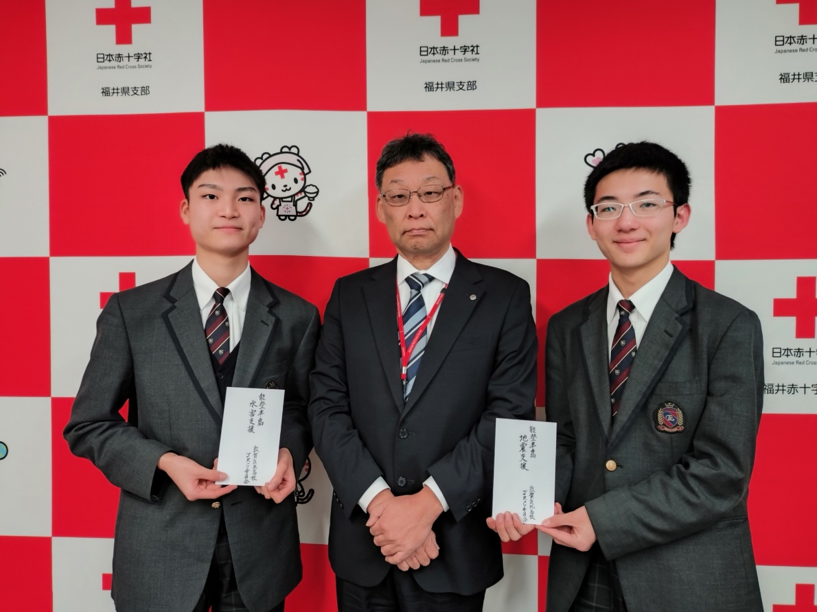 義援金 本校生徒会JRC委員会が敦賀市に登録している「資源回収奨励補助金交付制度」により、本校の古紙回収活動で交付された補助金から、能登半島地震・水害災害支援の義援金として、それぞれ5万円ずつ日本赤十字社福井県支部に寄託した。
