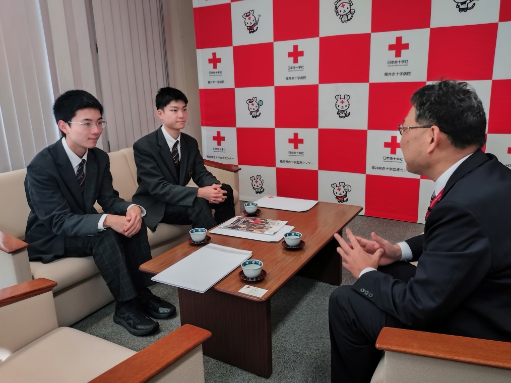 参加者 生徒会JRC委員会 委員長:高橋英明(2-1)、副委員長:大南雅揮(2-1)