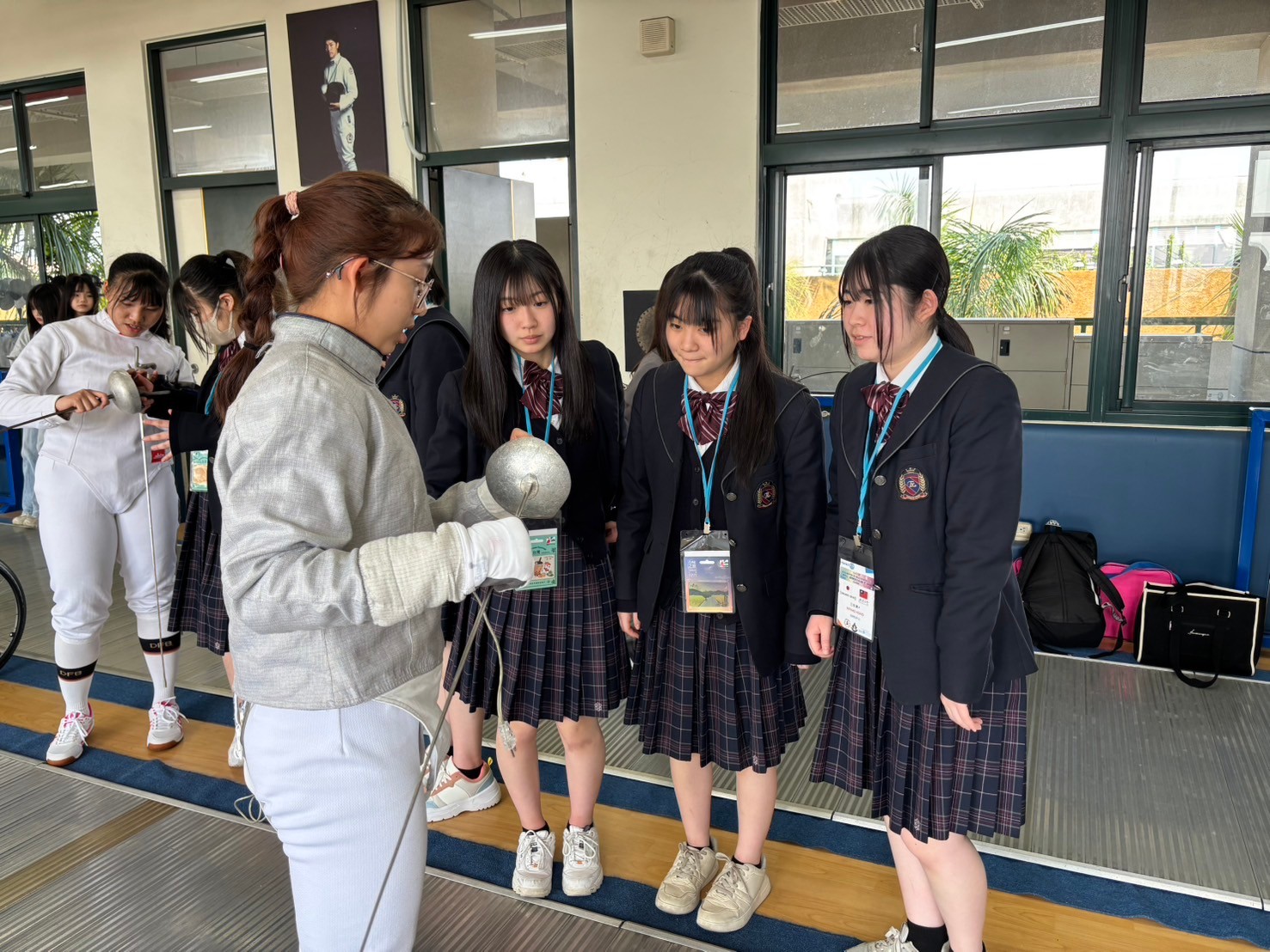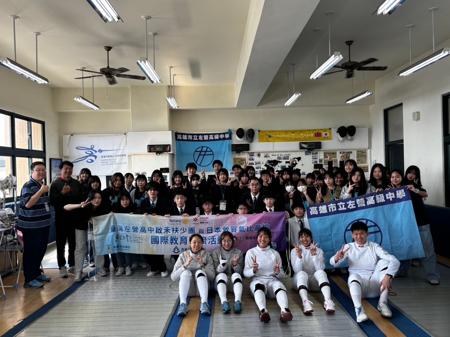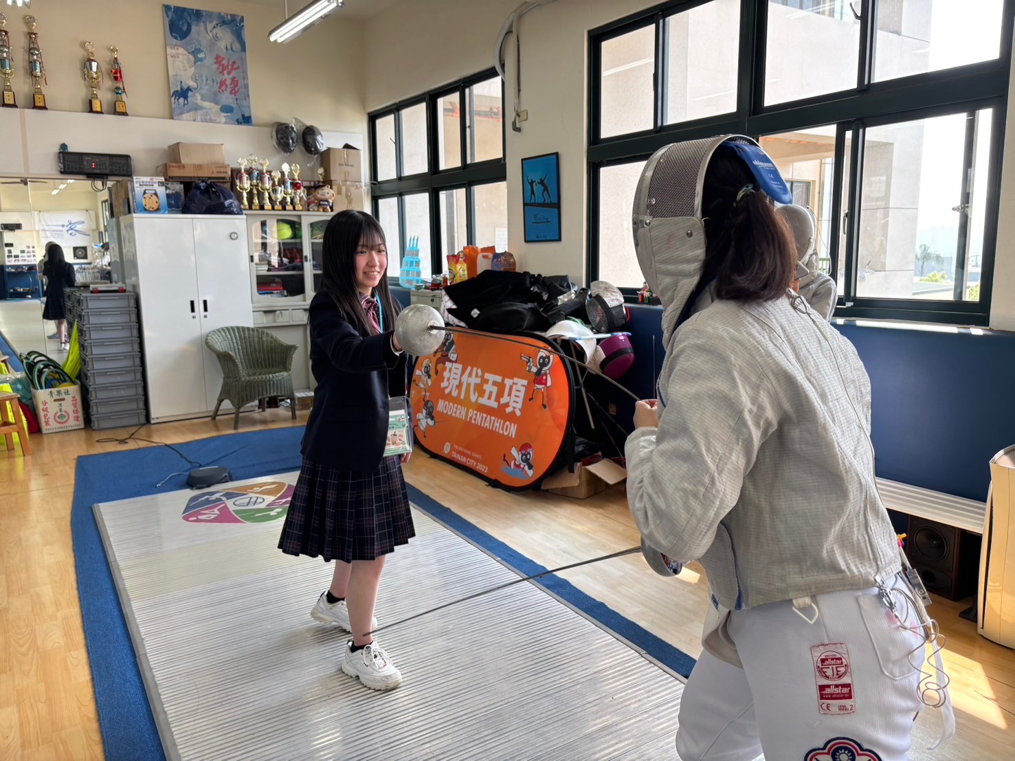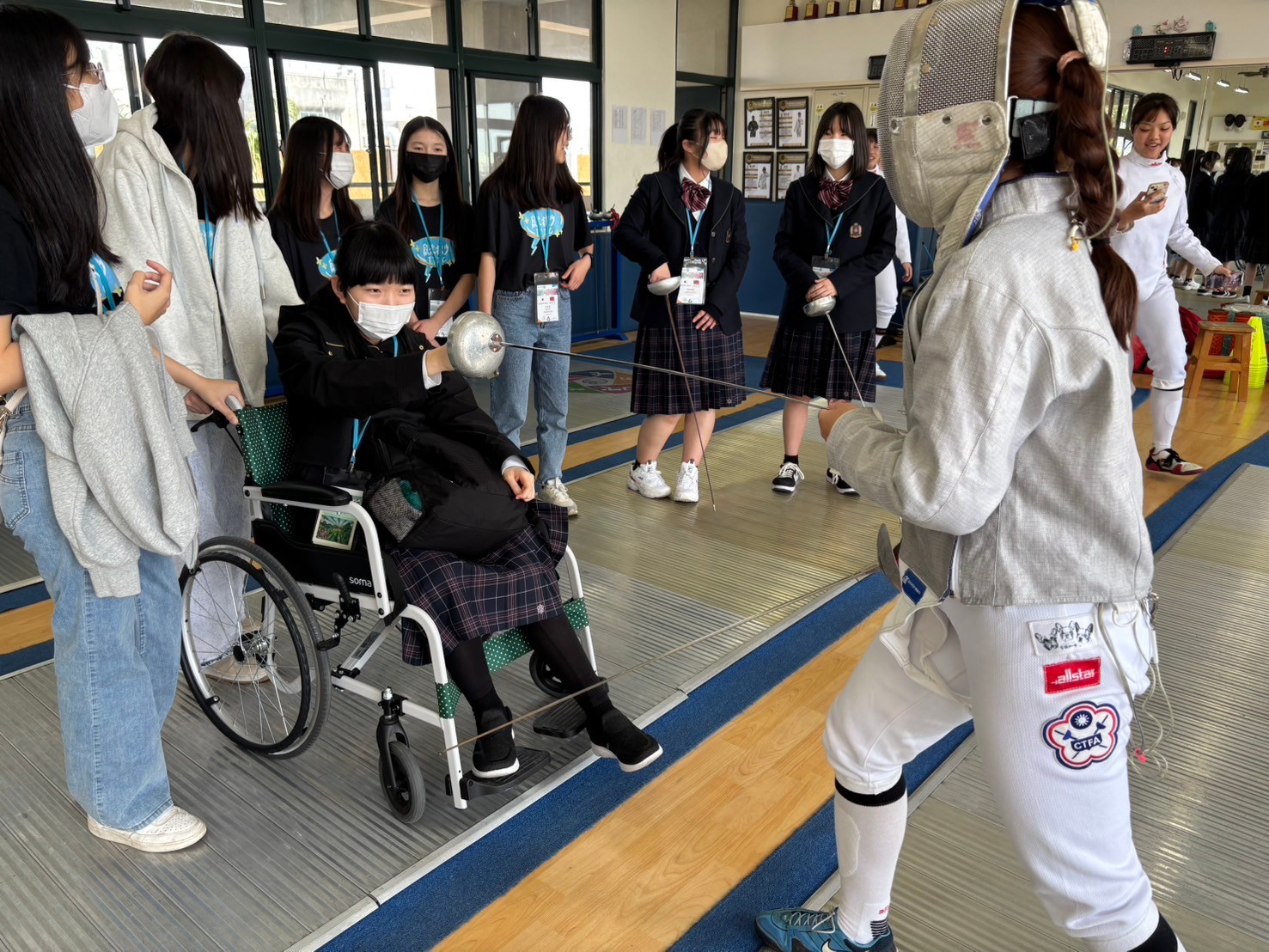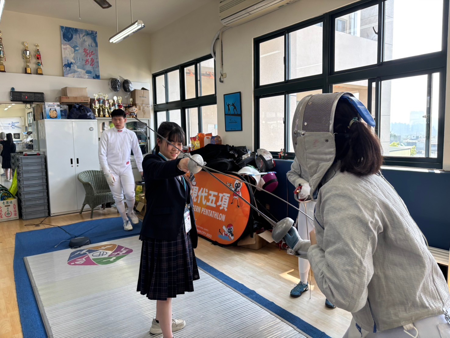 2日目は佐營高級中学校との交流活動です。部活動体験では、フェンシング、射撃を体験しました。佐營高級中学校のみなさんと一緒に給食を食べ、午後は本校のユネスコスクールの活動を紹介しました。レクリエーションやグループ交流を行いました。