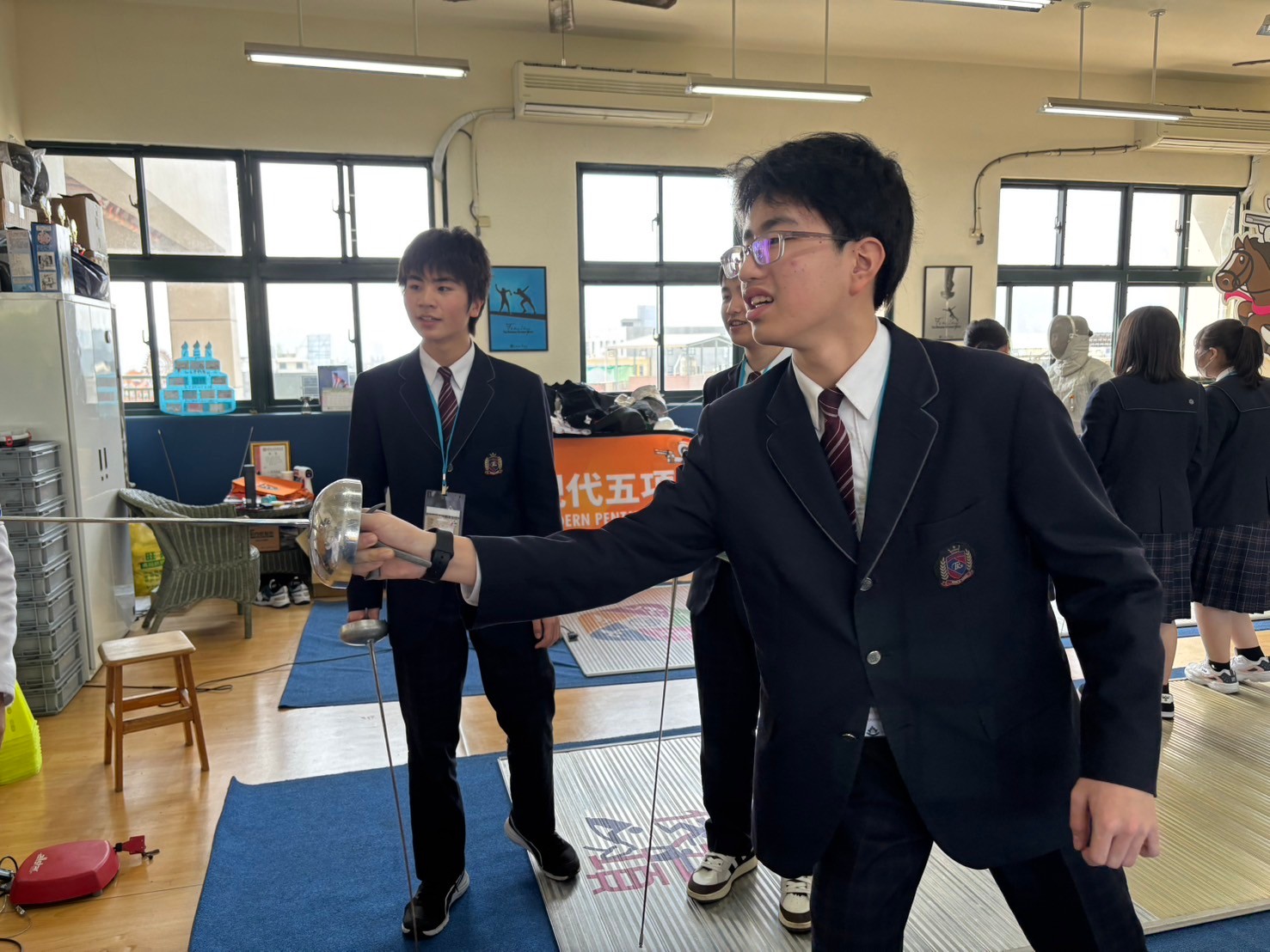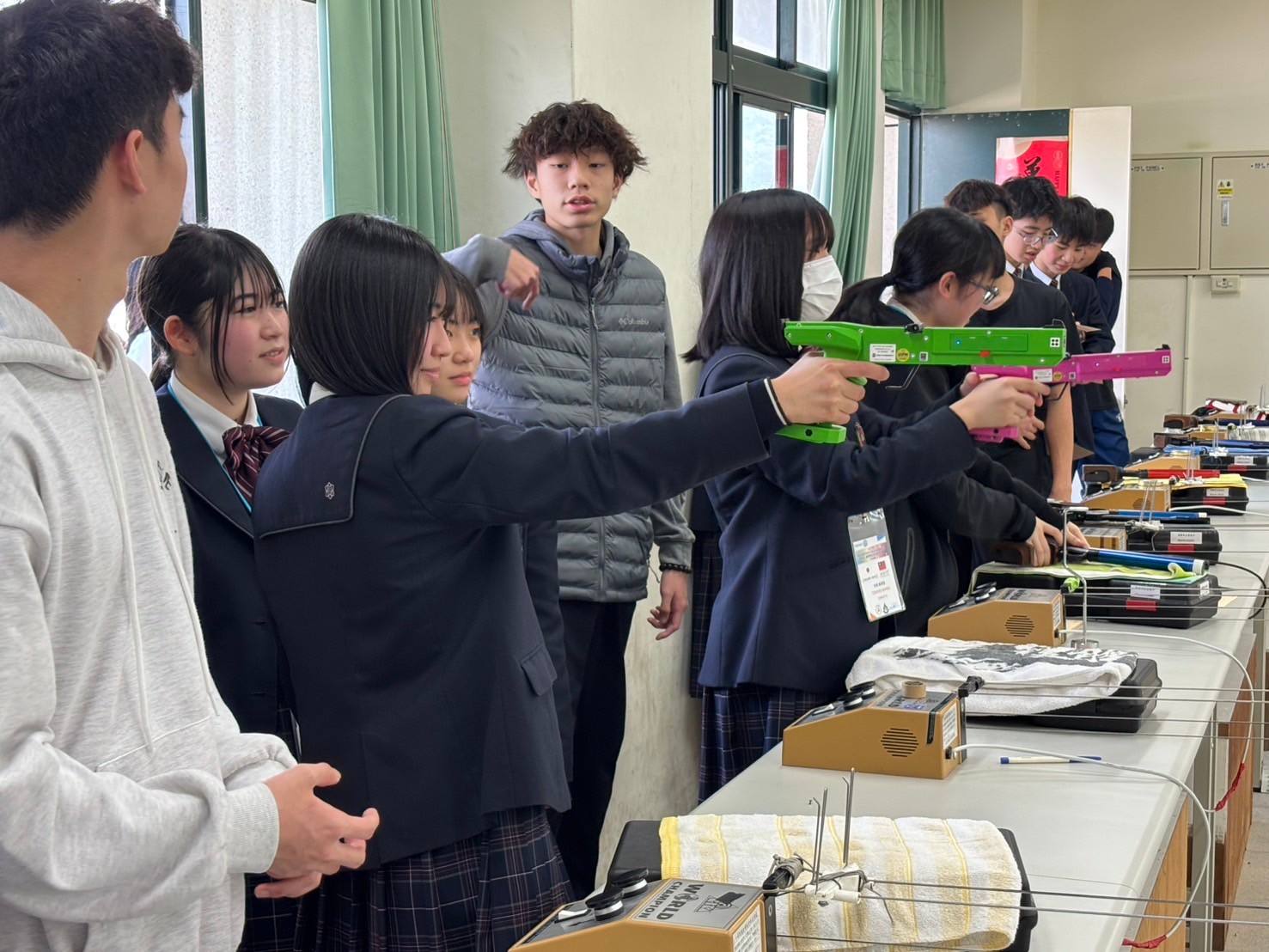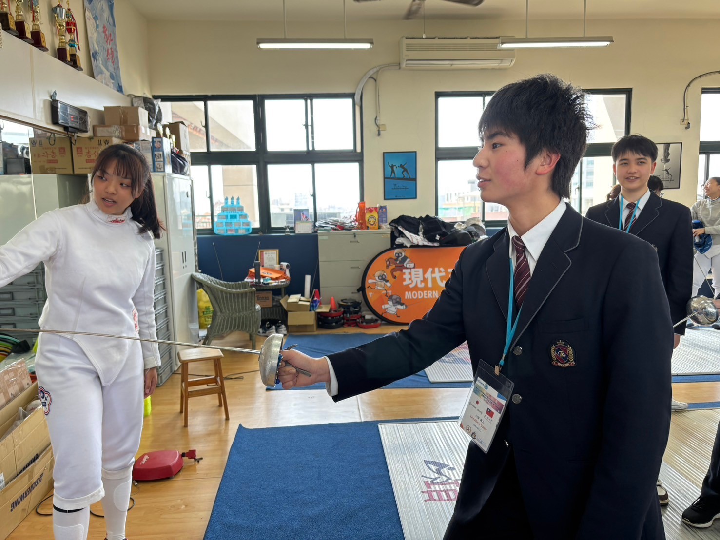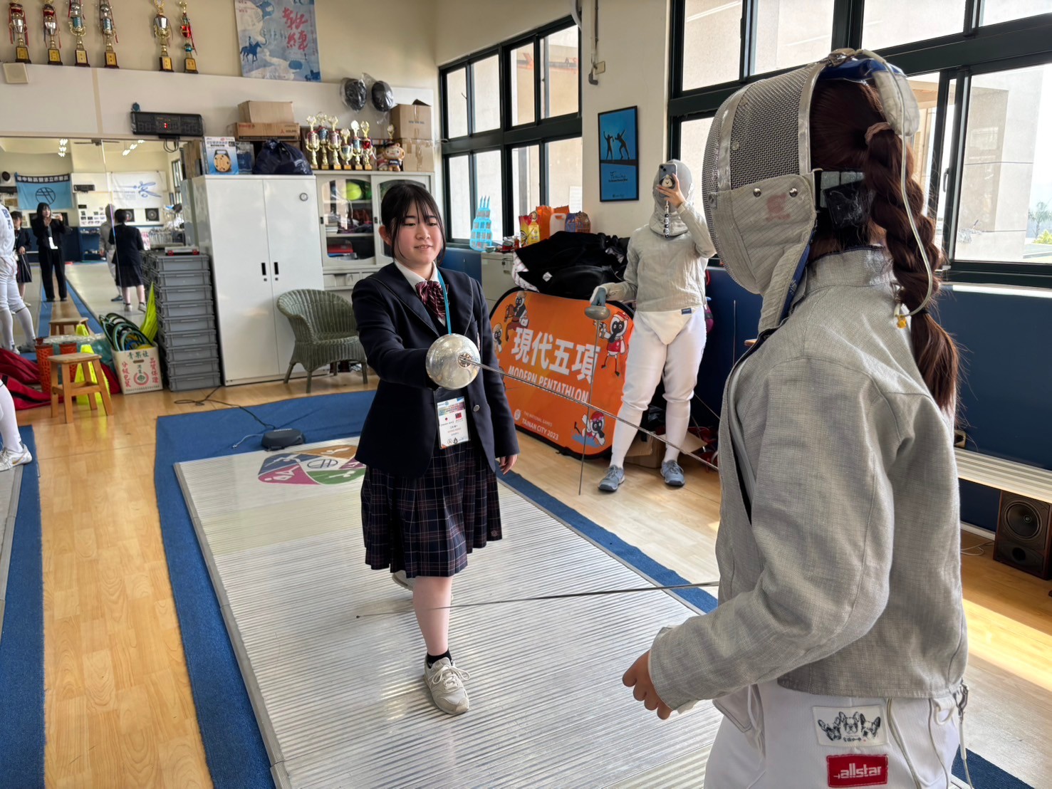 2日目は佐營高級中学校との交流活動です。部活動体験では、フェンシング、射撃を体験しました。佐營高級中学校のみなさんと一緒に給食を食べ、午後は本校のユネスコスクールの活動を紹介しました。レクリエーションやグループ交流を行いました。
