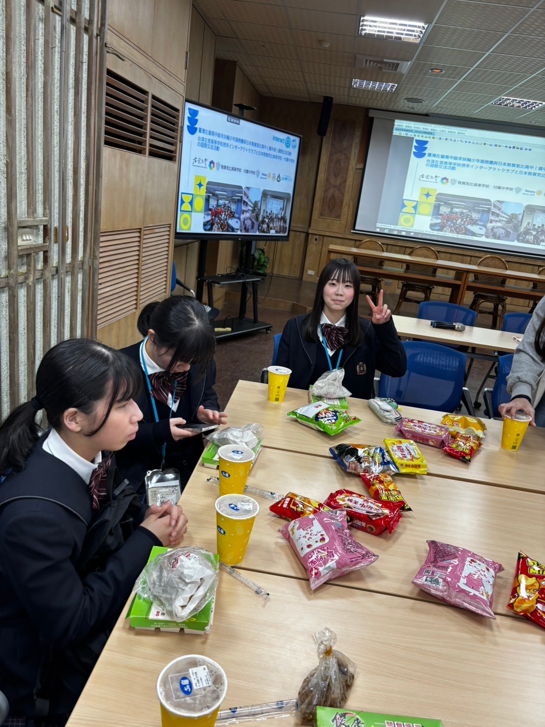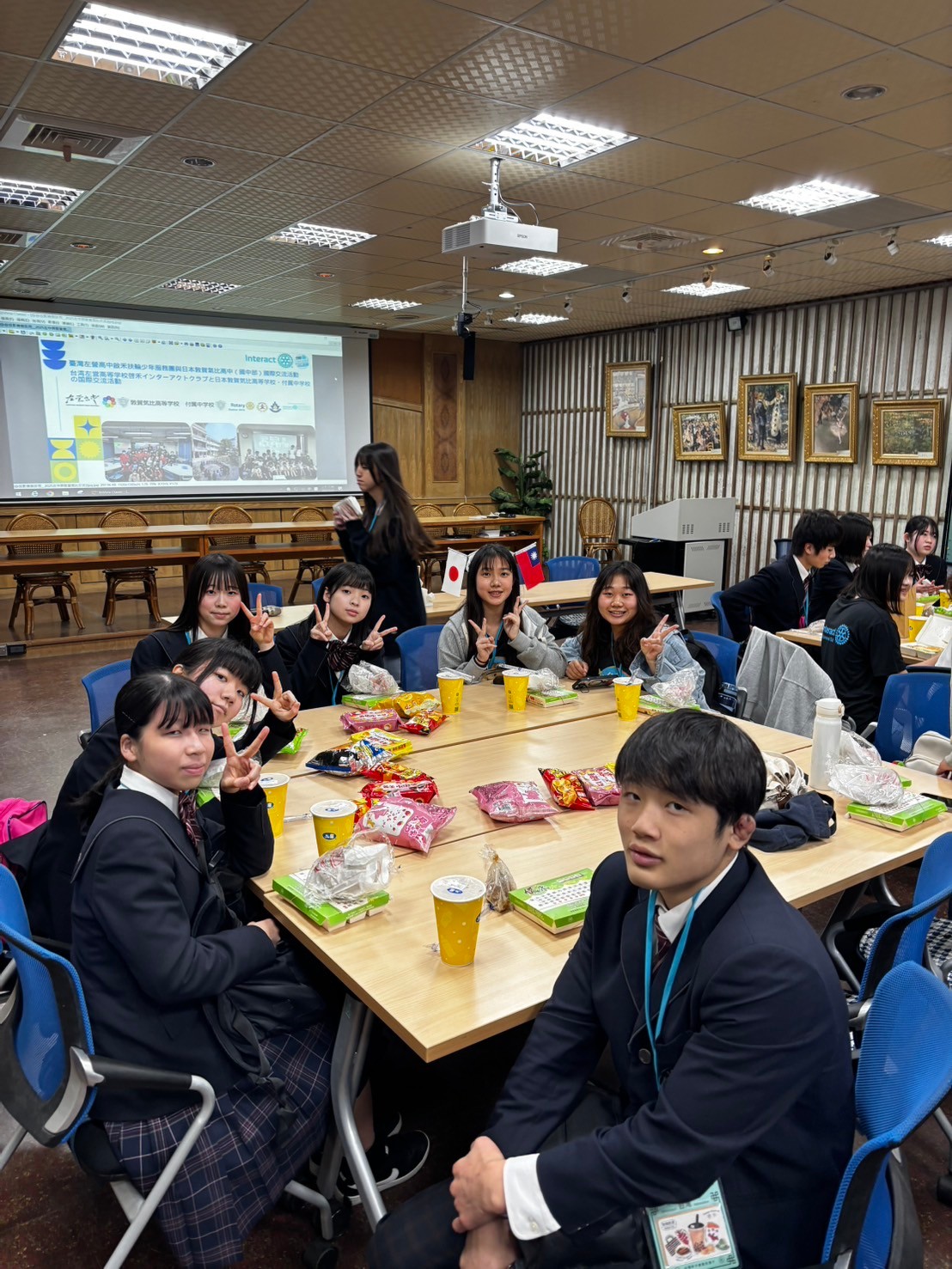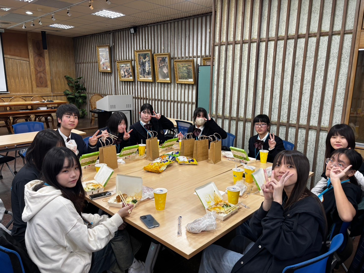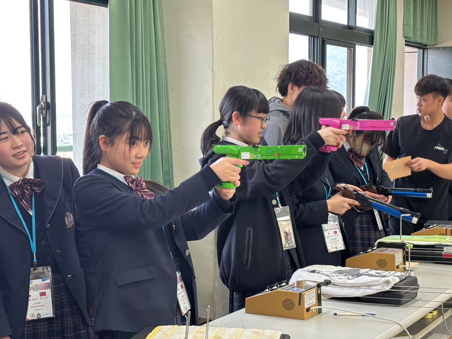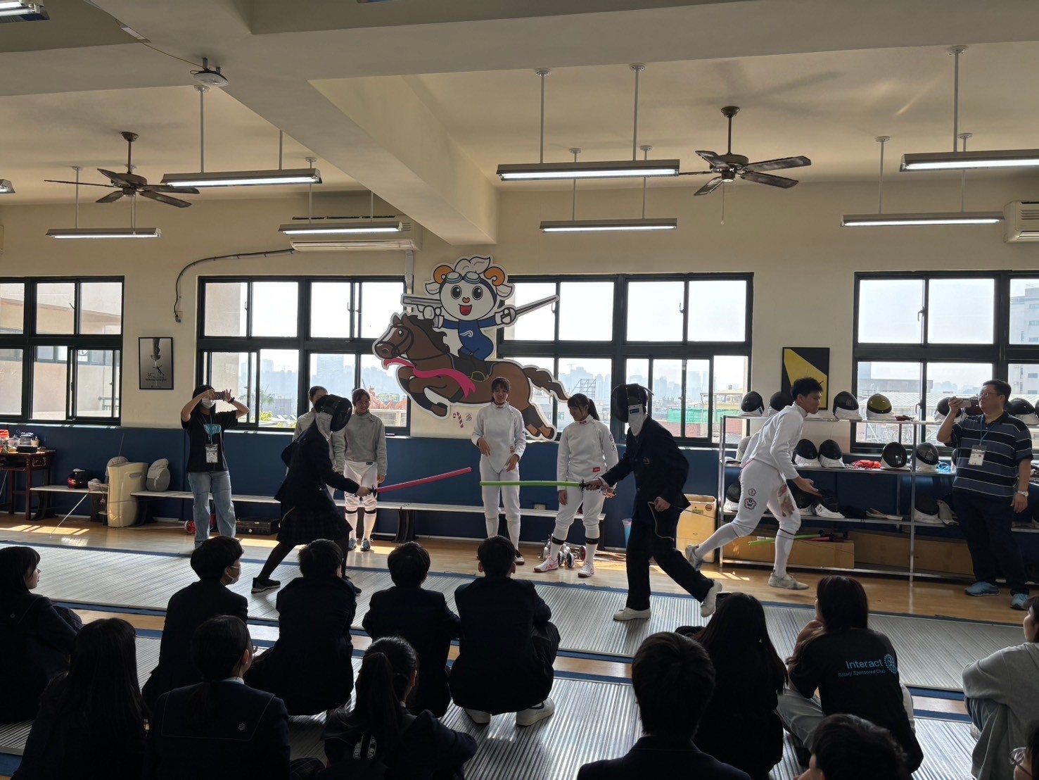 2日目は佐營高級中学校との交流活動です。部活動体験では、フェンシング、射撃を体験しました。佐營高級中学校のみなさんと一緒に給食を食べ、午後は本校のユネスコスクールの活動を紹介しました。レクリエーションやグループ交流を行いました。