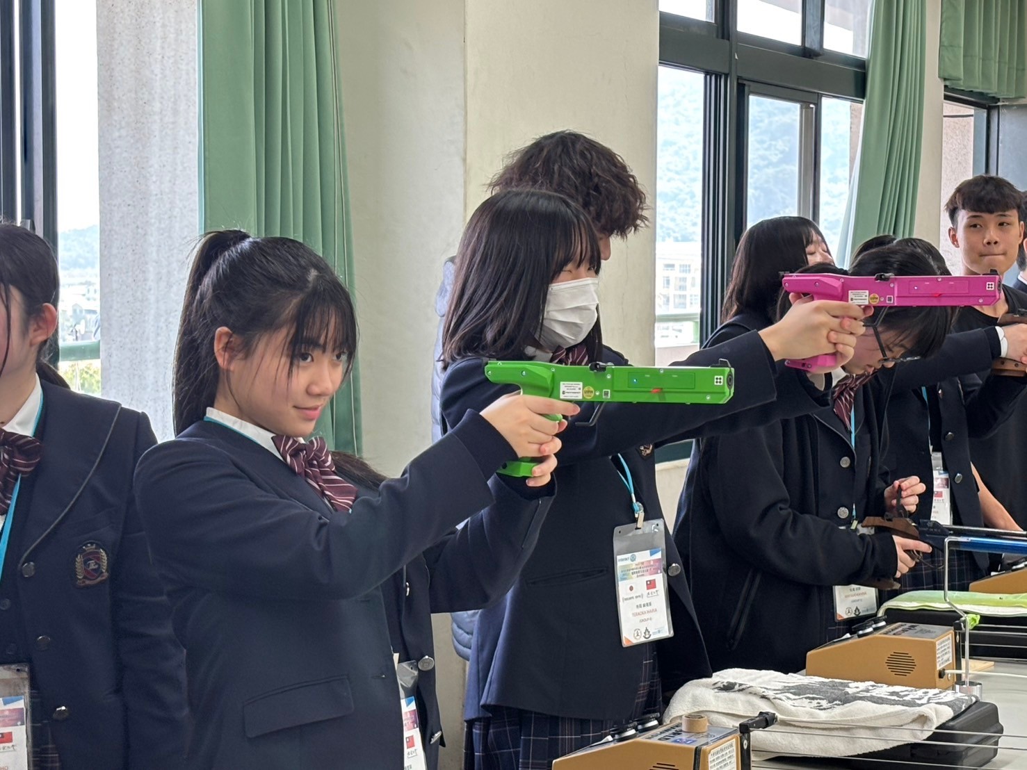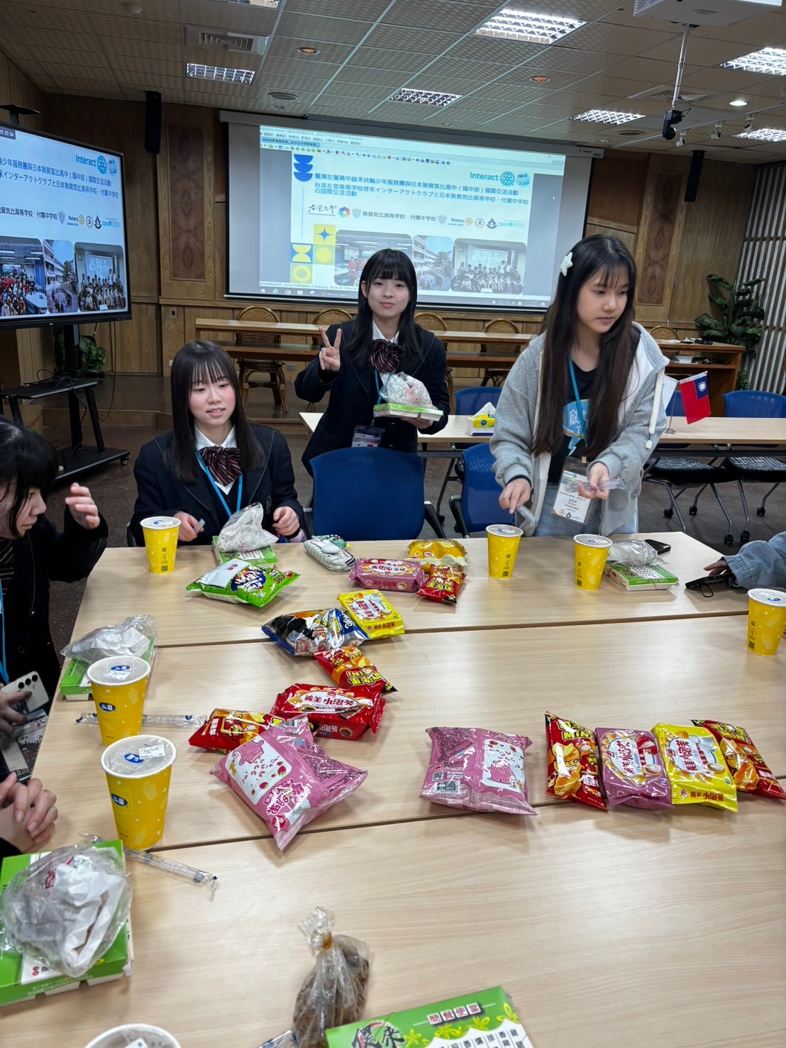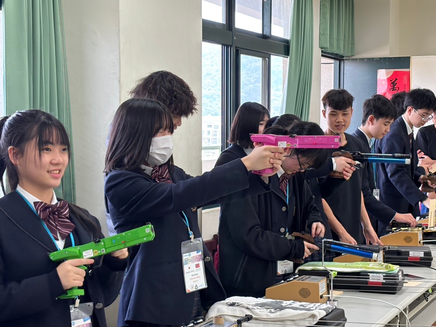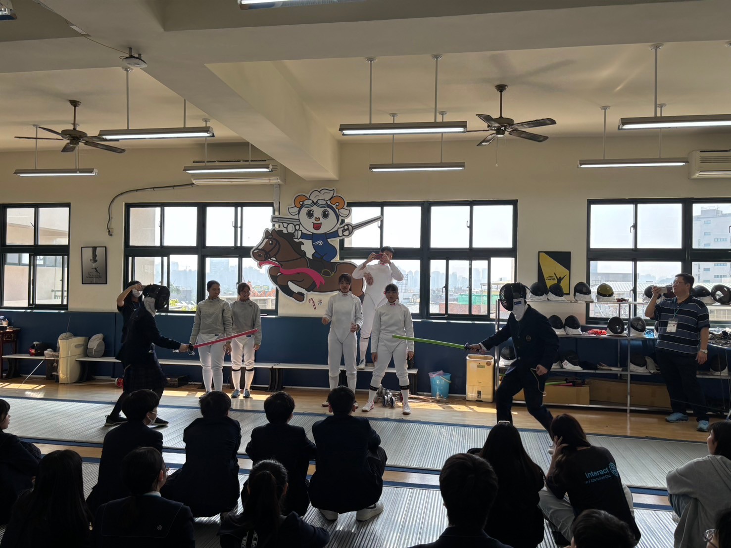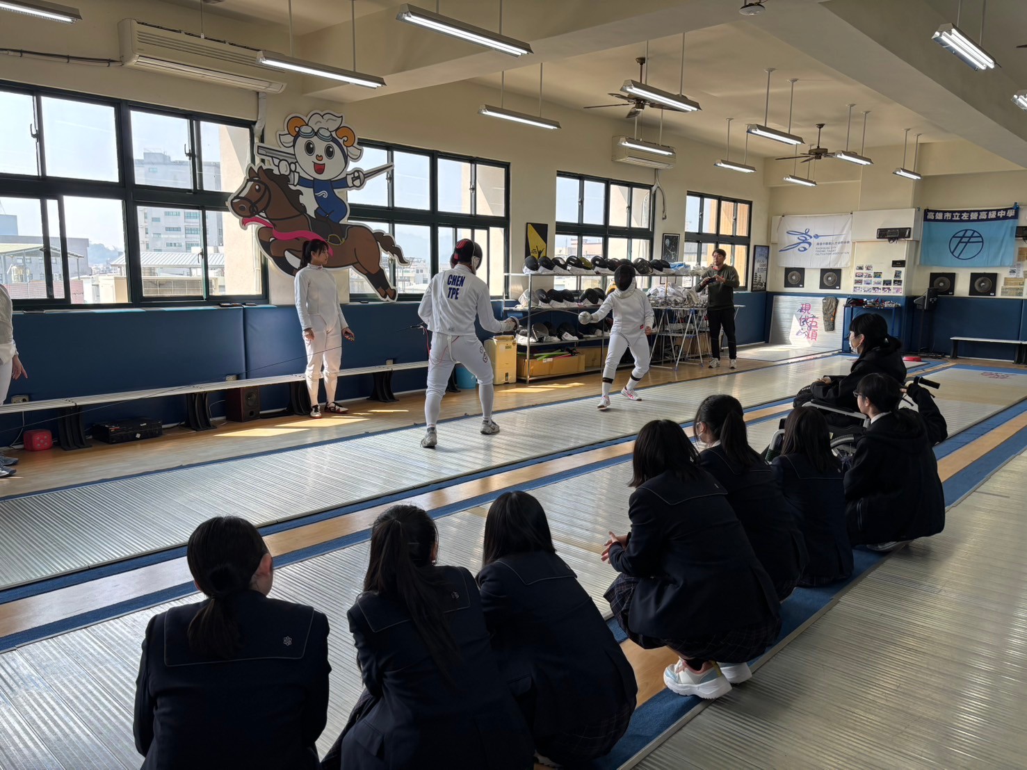 2日目は佐營高級中学校との交流活動です。部活動体験では、フェンシング、射撃を体験しました。佐營高級中学校のみなさんと一緒に給食を食べ、午後は本校のユネスコスクールの活動を紹介しました。レクリエーションやグループ交流を行いました。