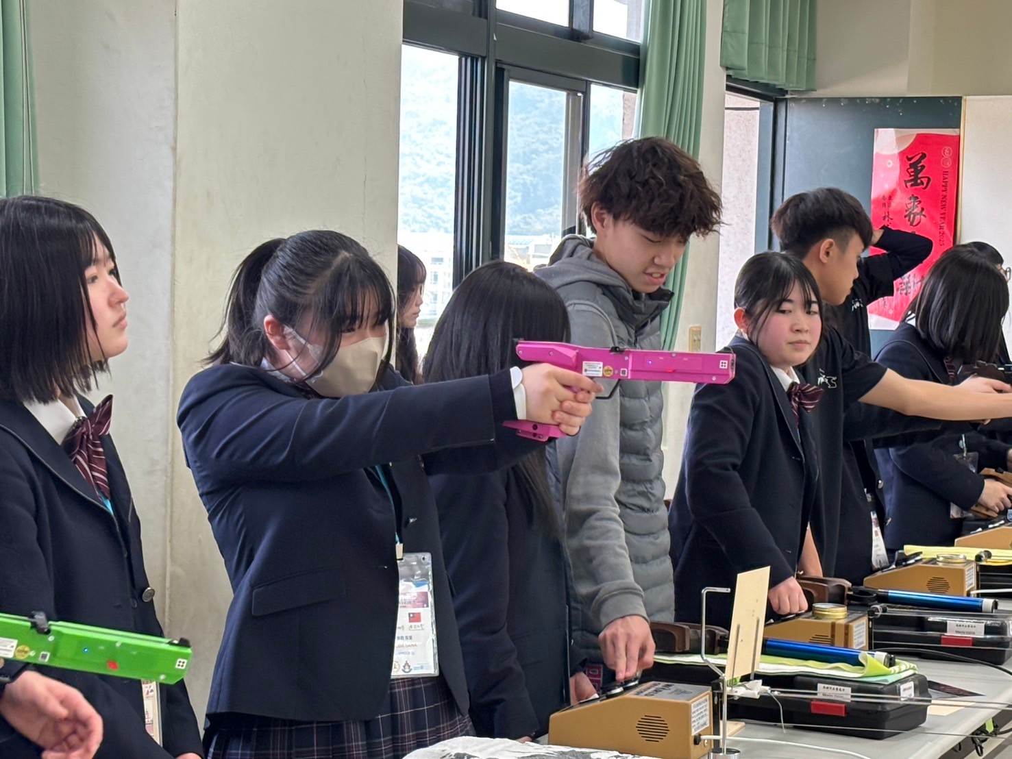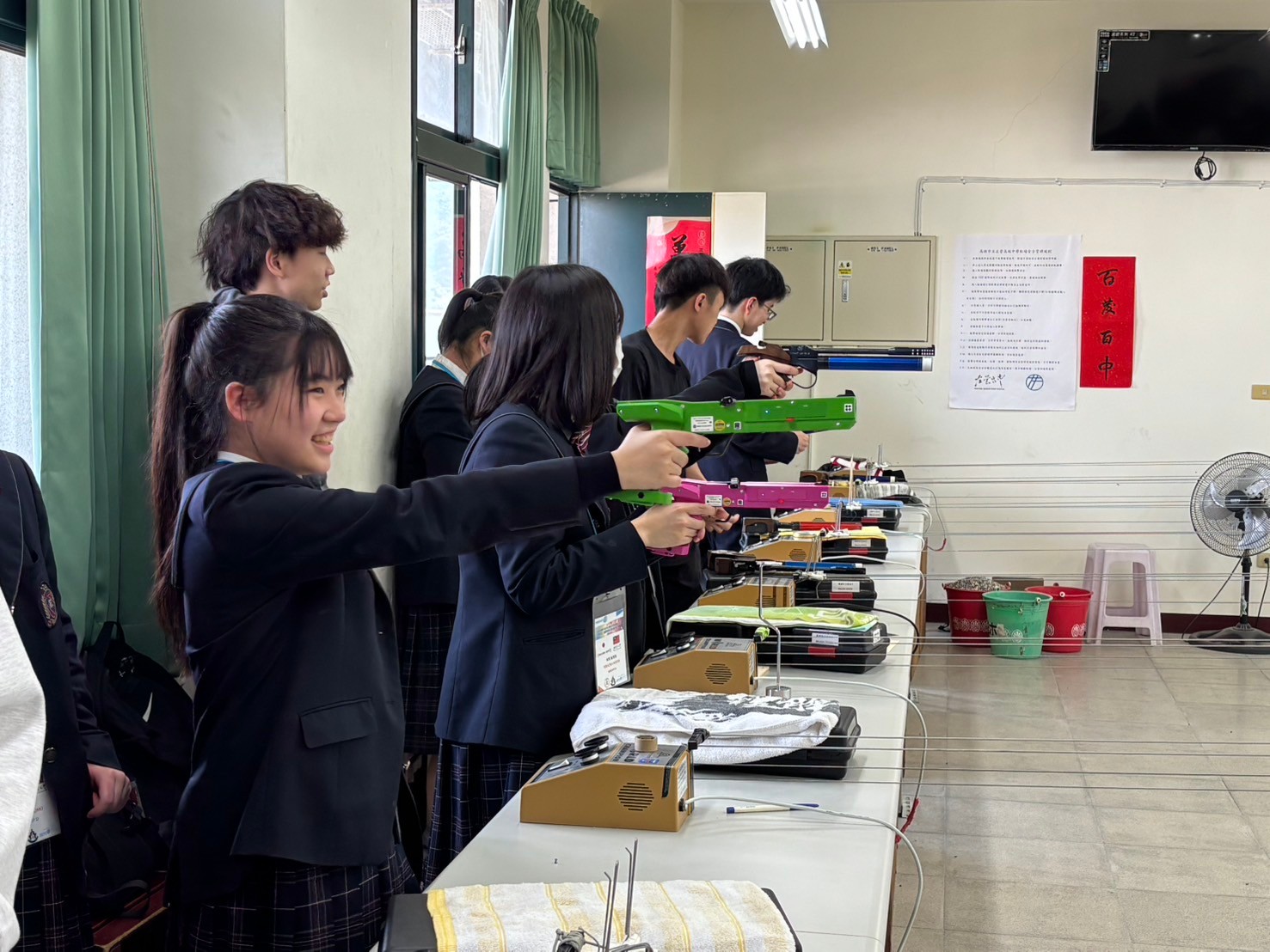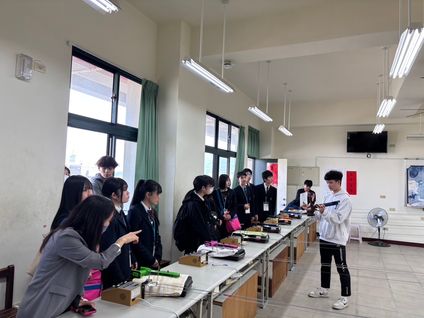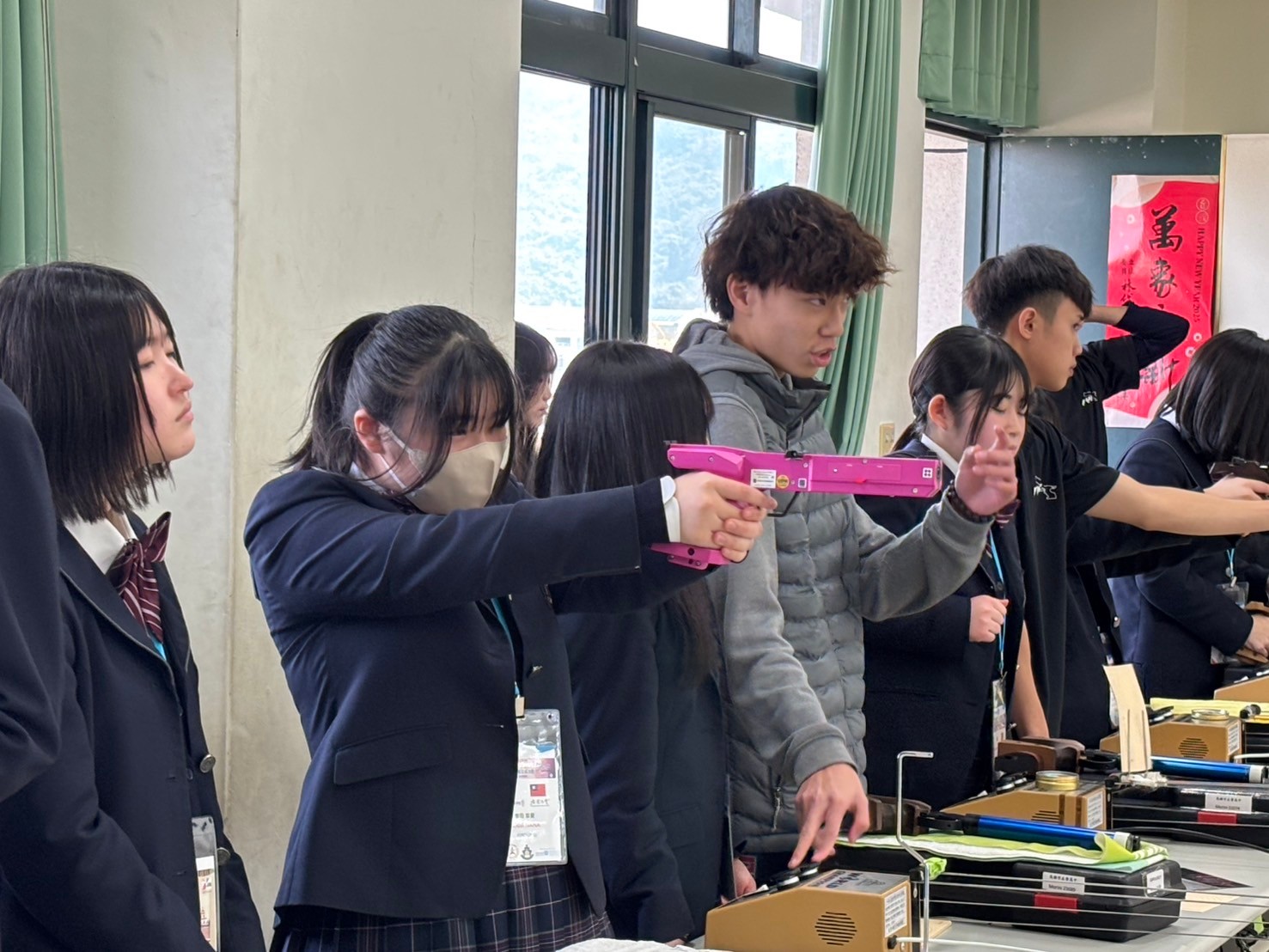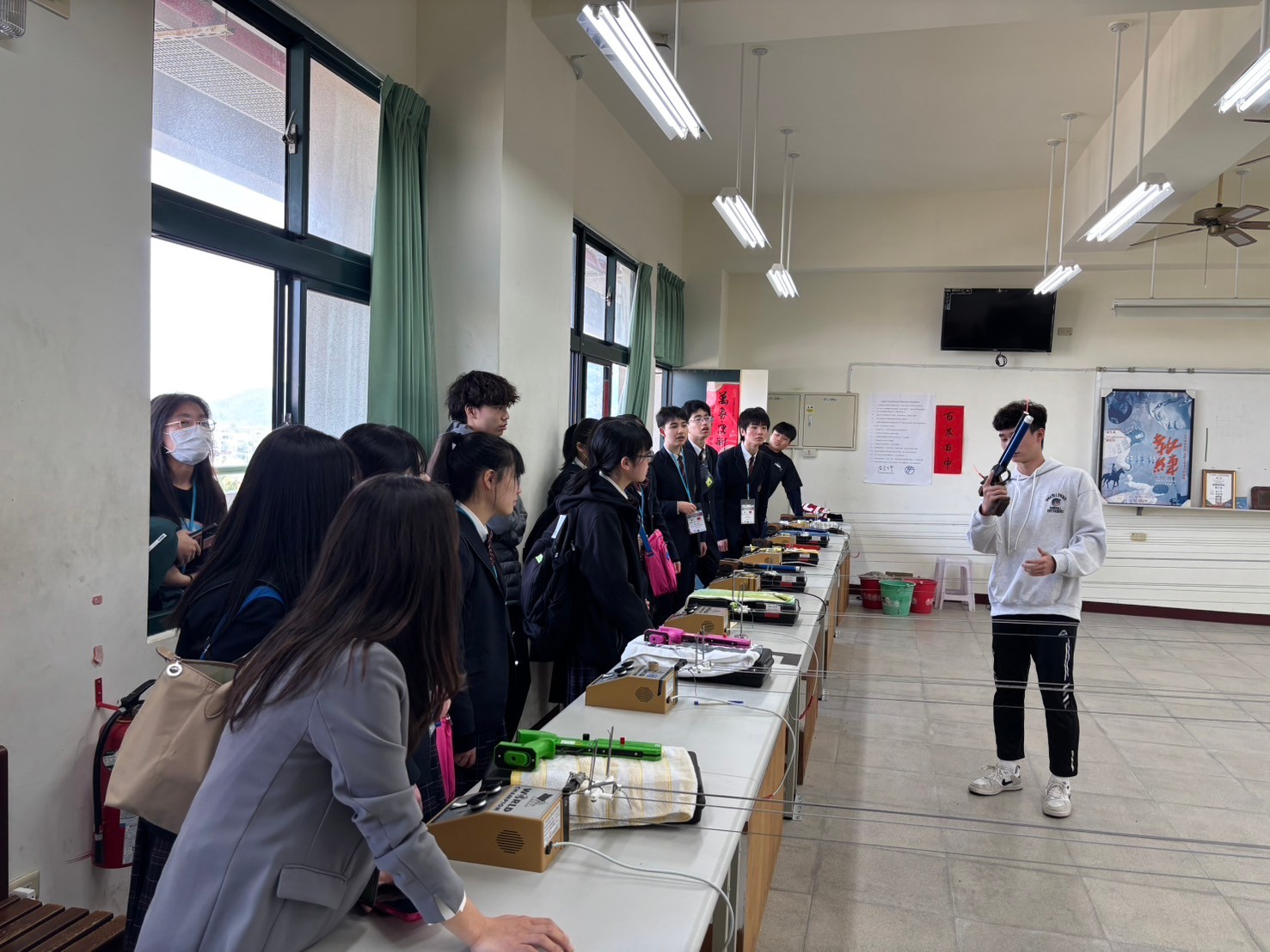 2日目は佐營高級中学校との交流活動です。部活動体験では、フェンシング、射撃を体験しました。佐營高級中学校のみなさんと一緒に給食を食べ、午後は本校のユネスコスクールの活動を紹介しました。レクリエーションやグループ交流を行いました。