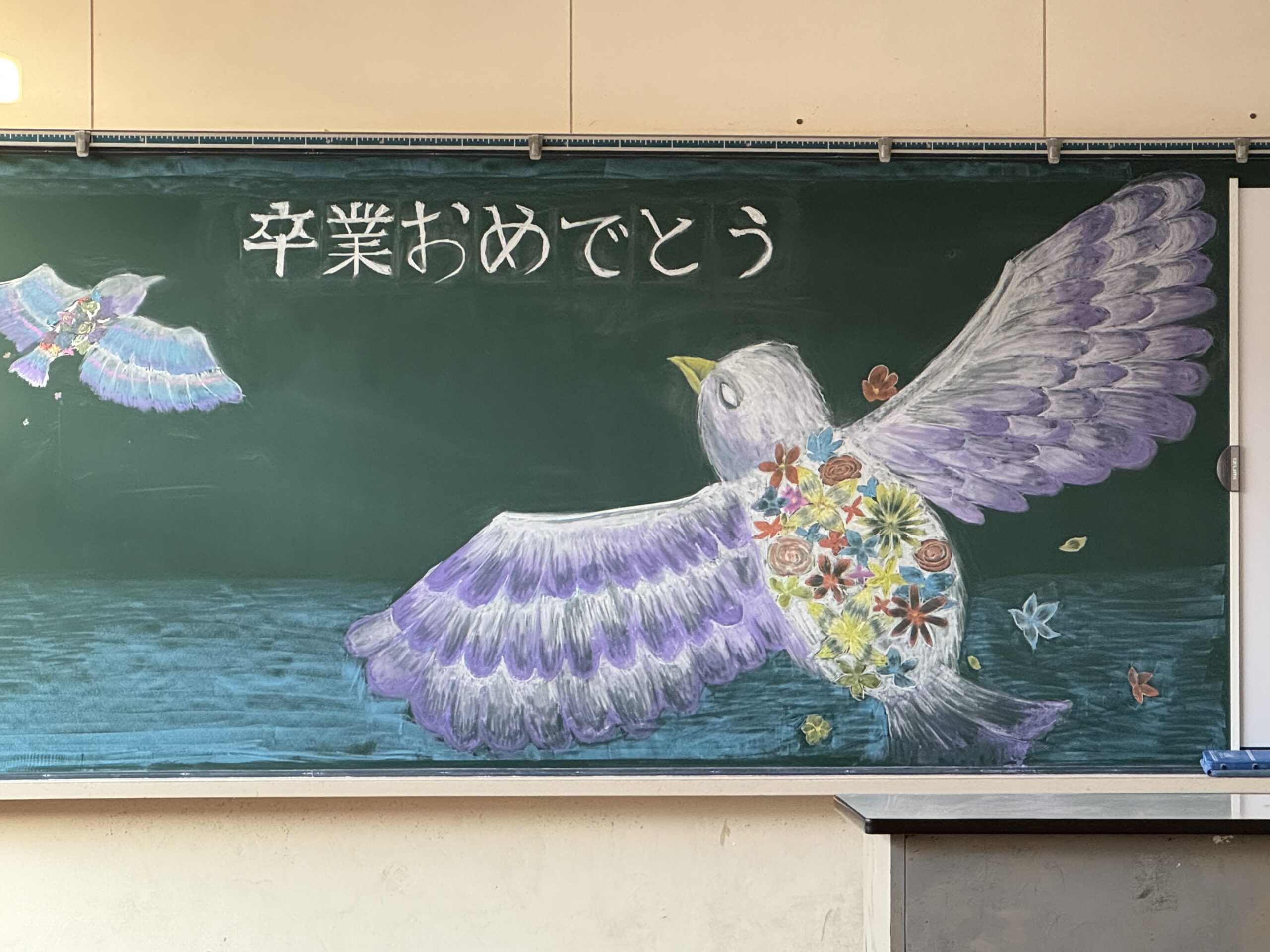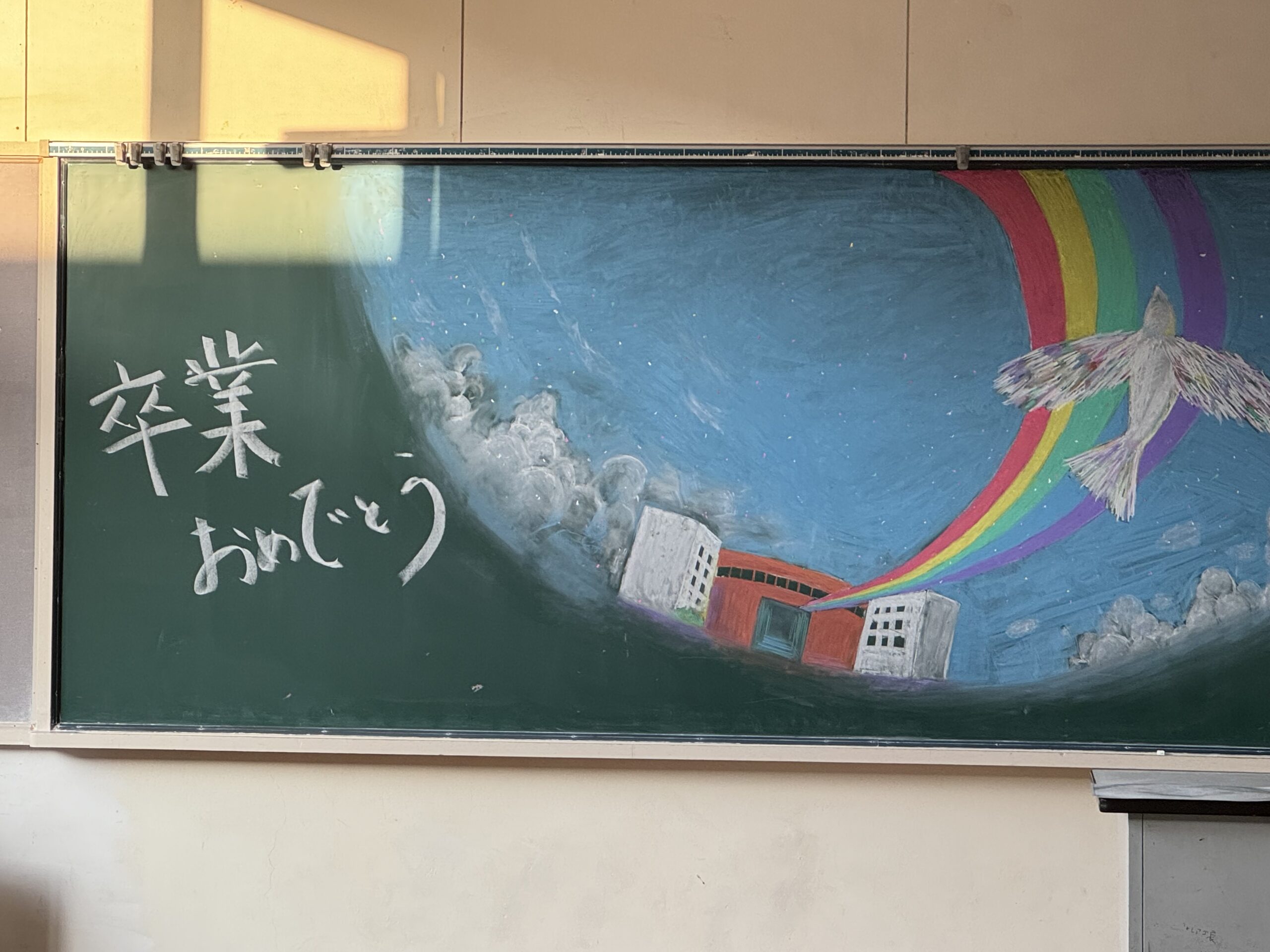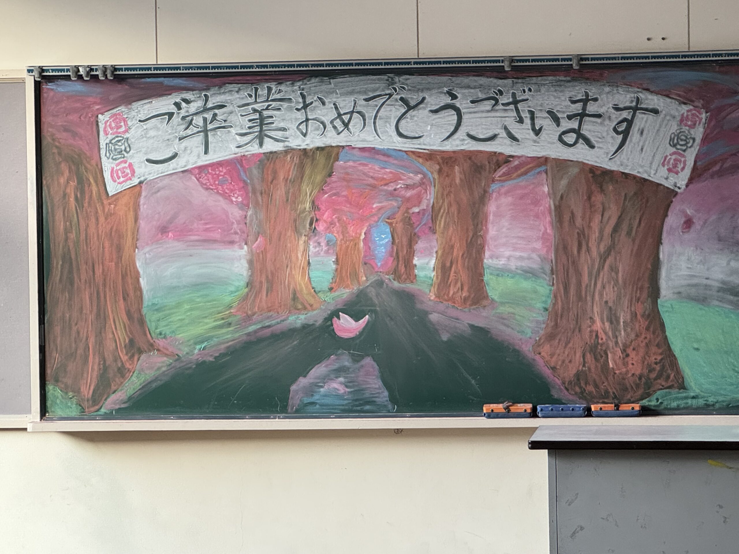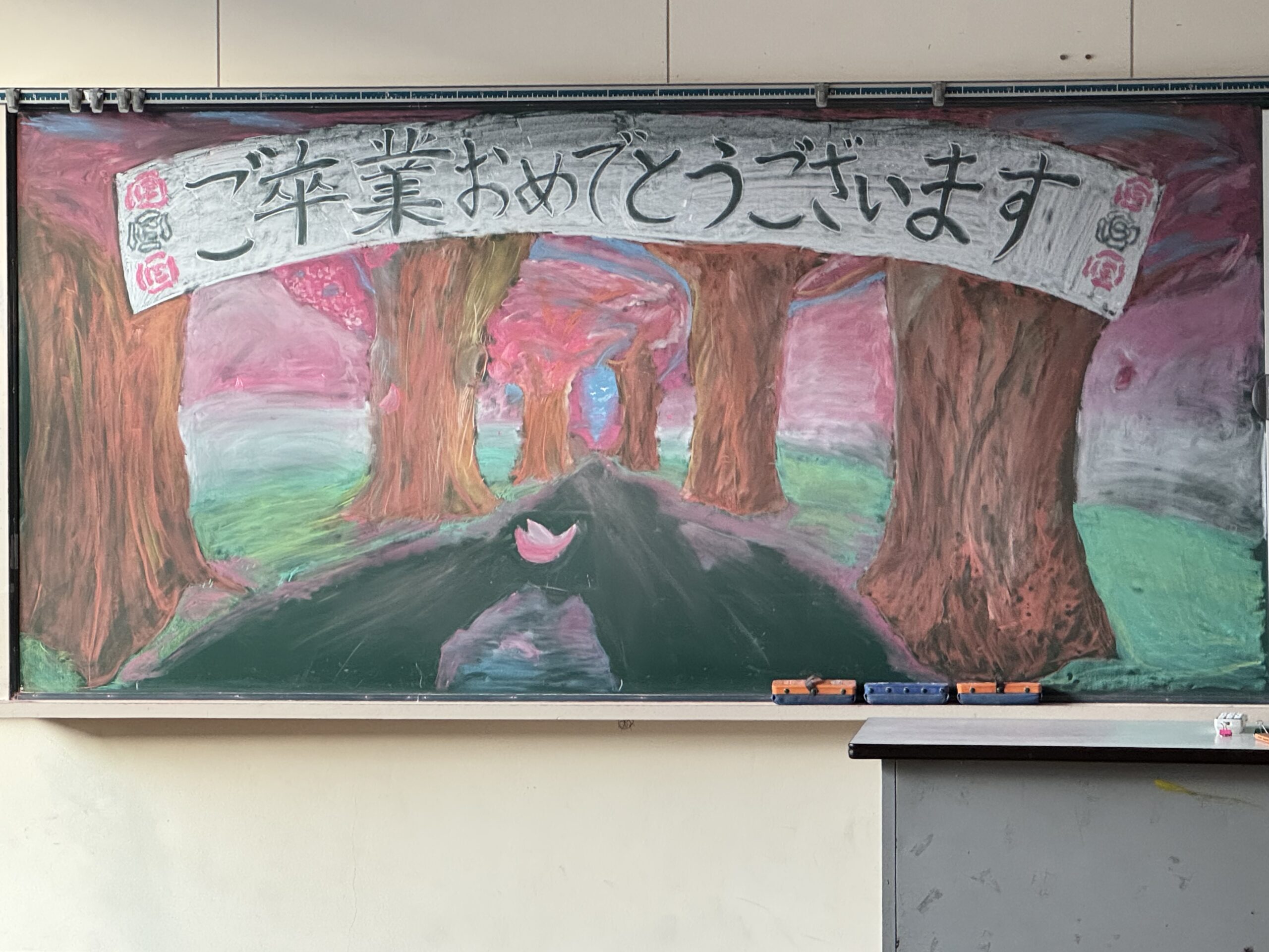 卒業生の各教室には生徒による黒板アートが描かれています。
