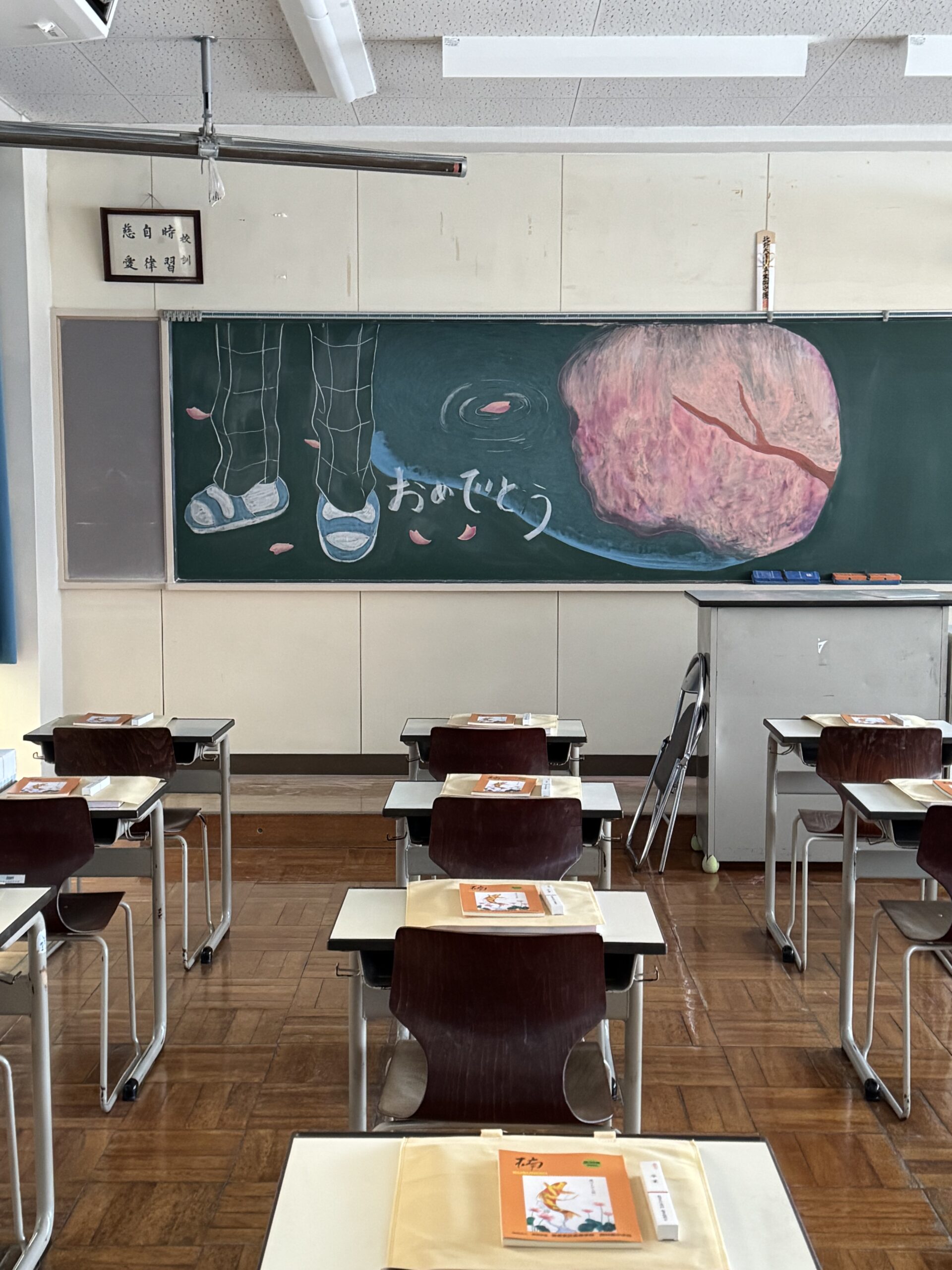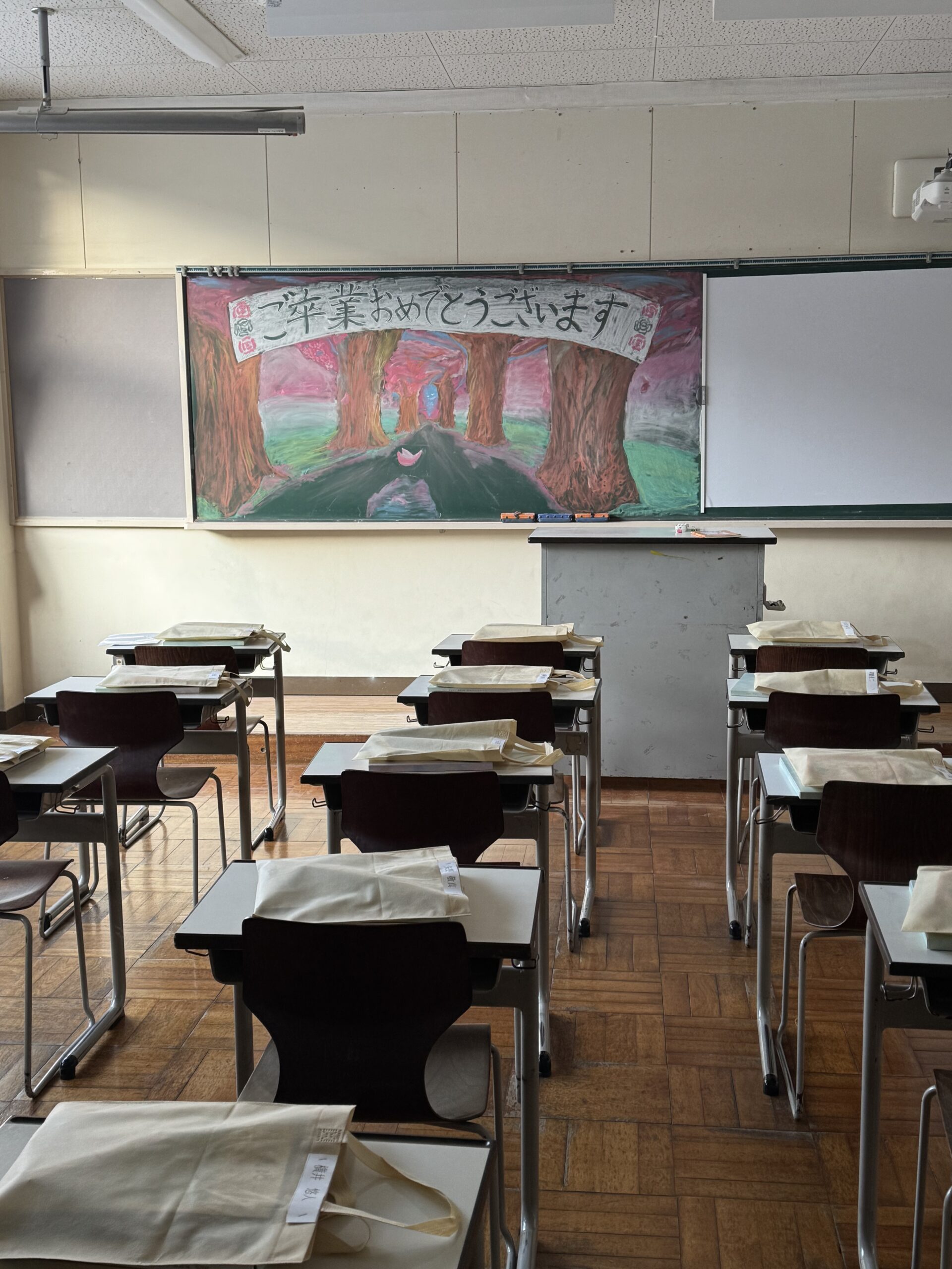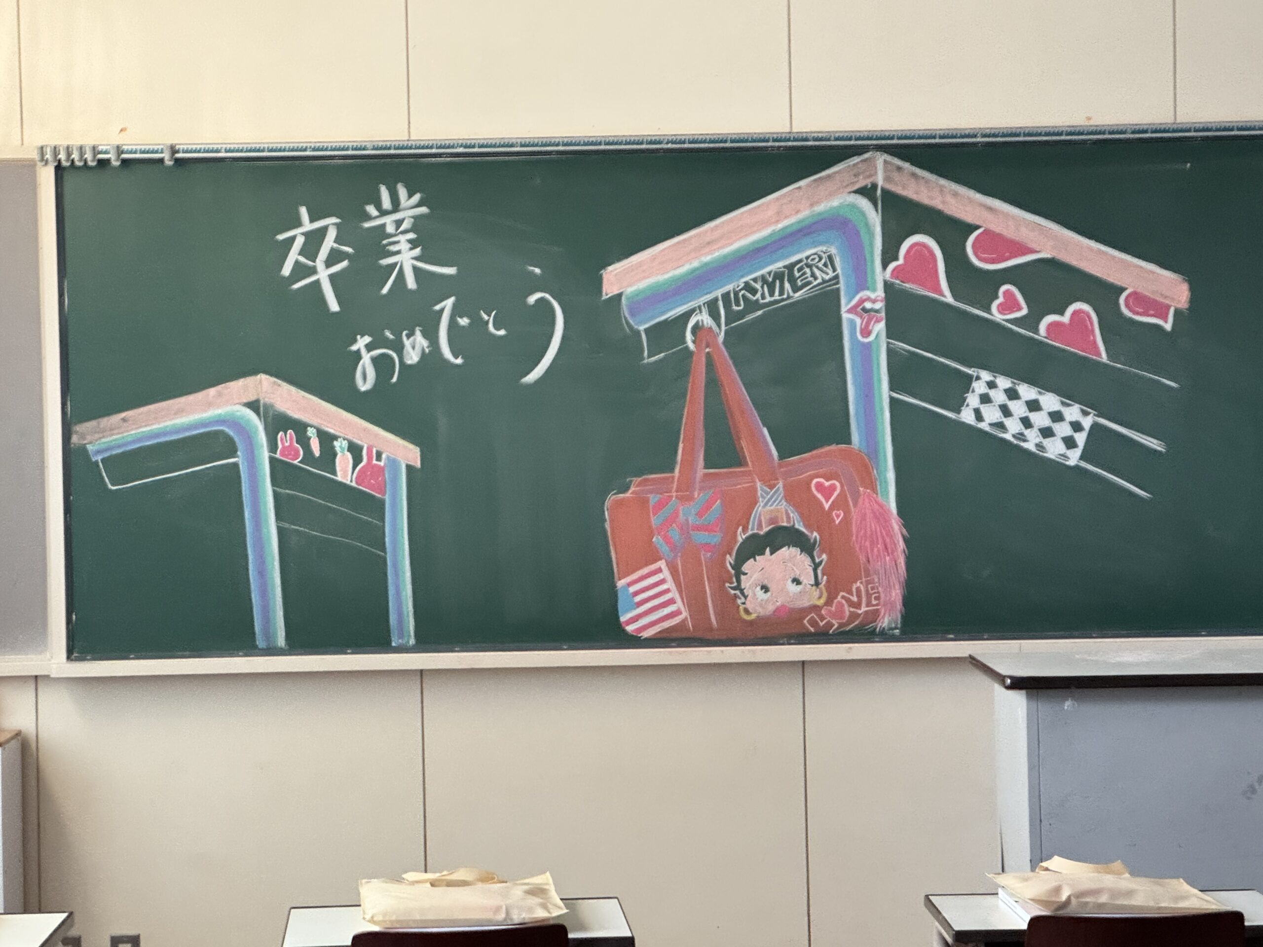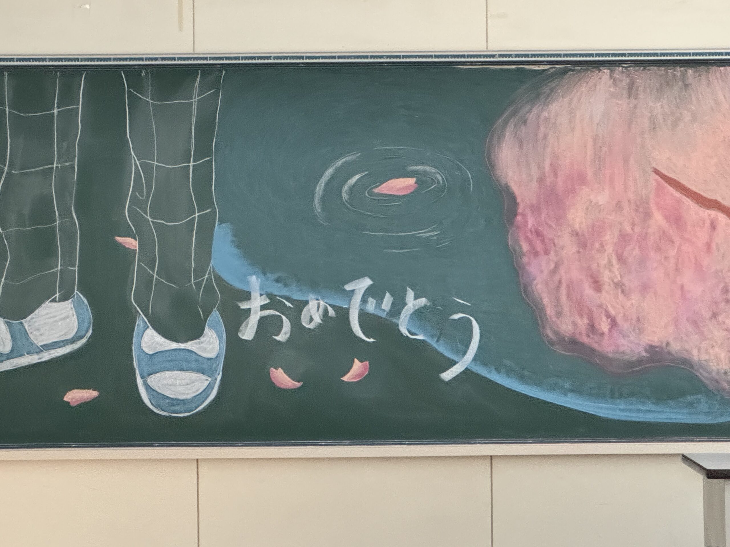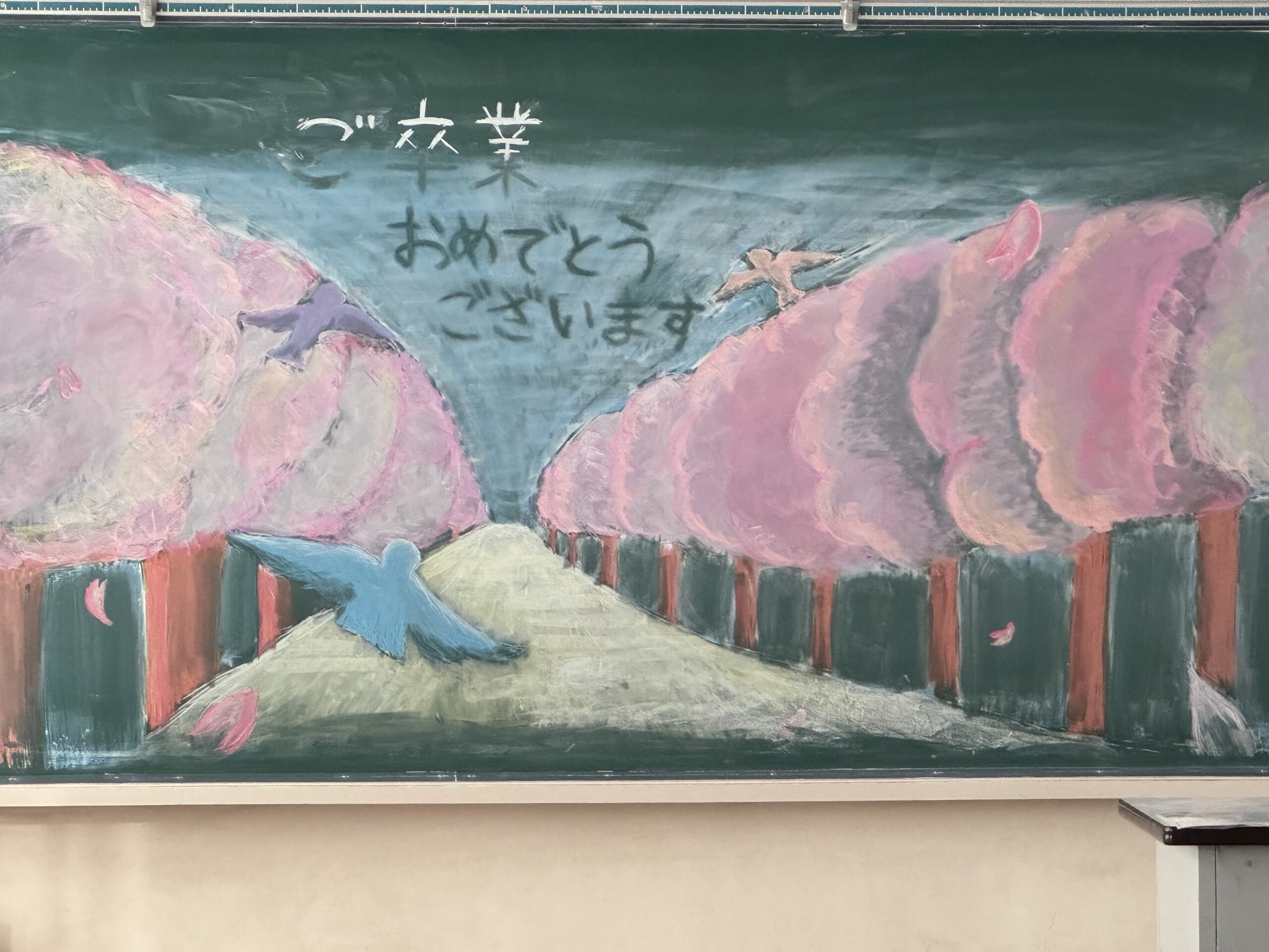 卒業生の各教室には生徒による黒板アートが描かれています。
