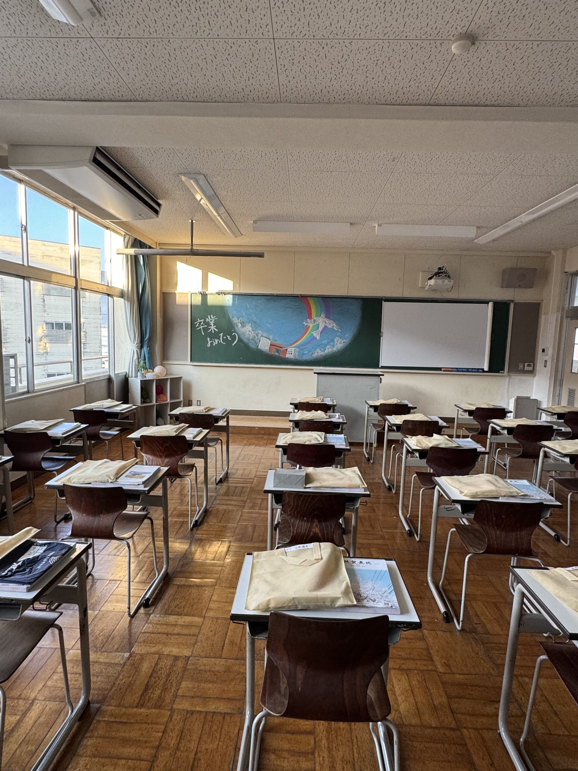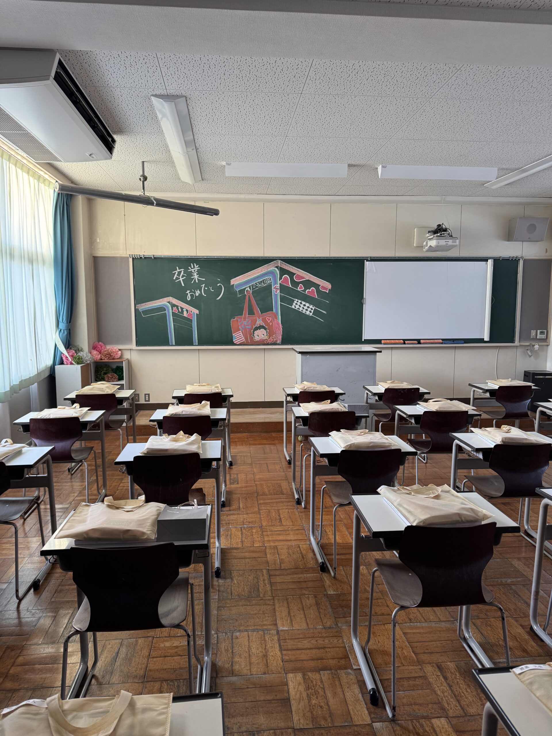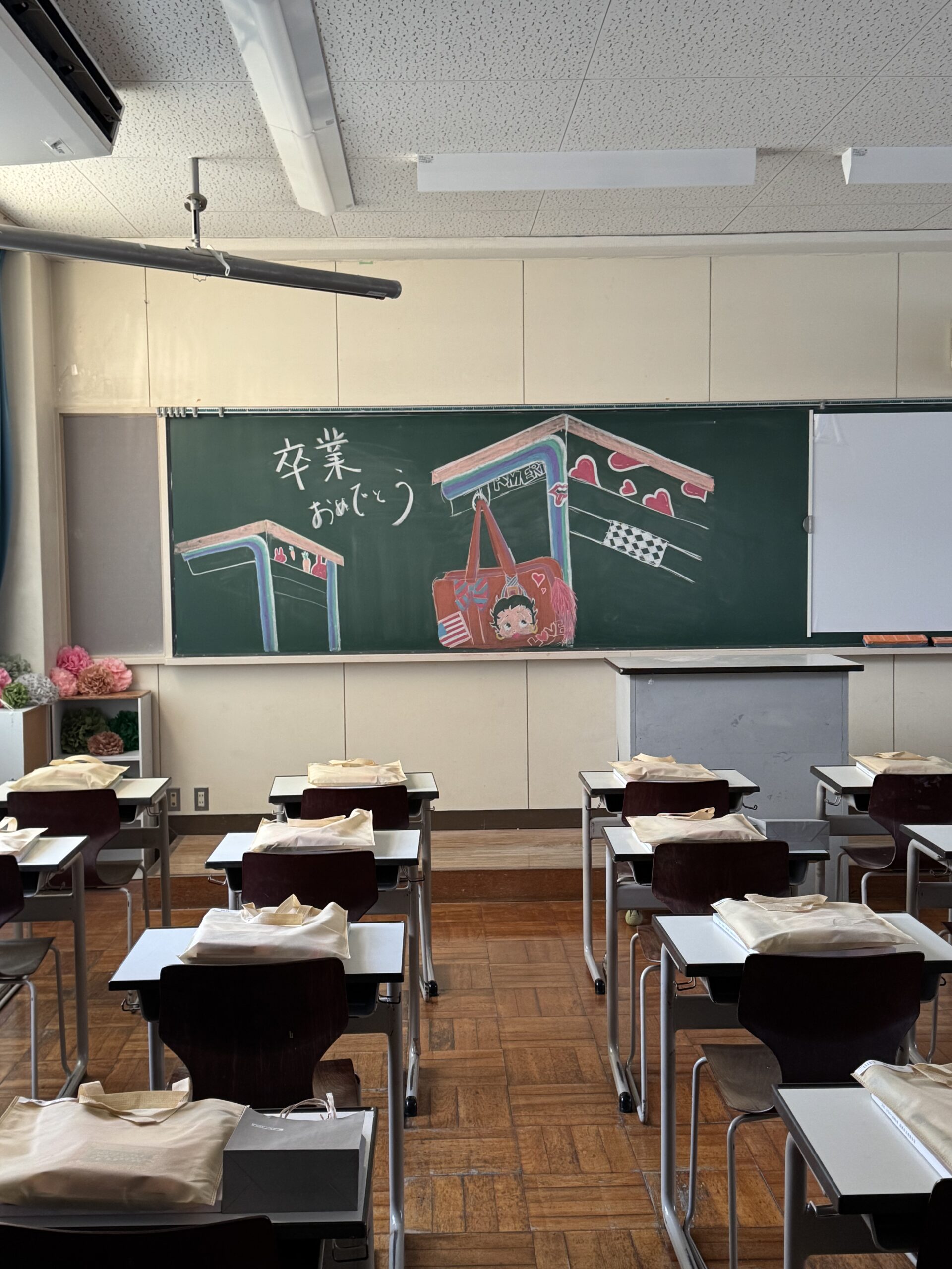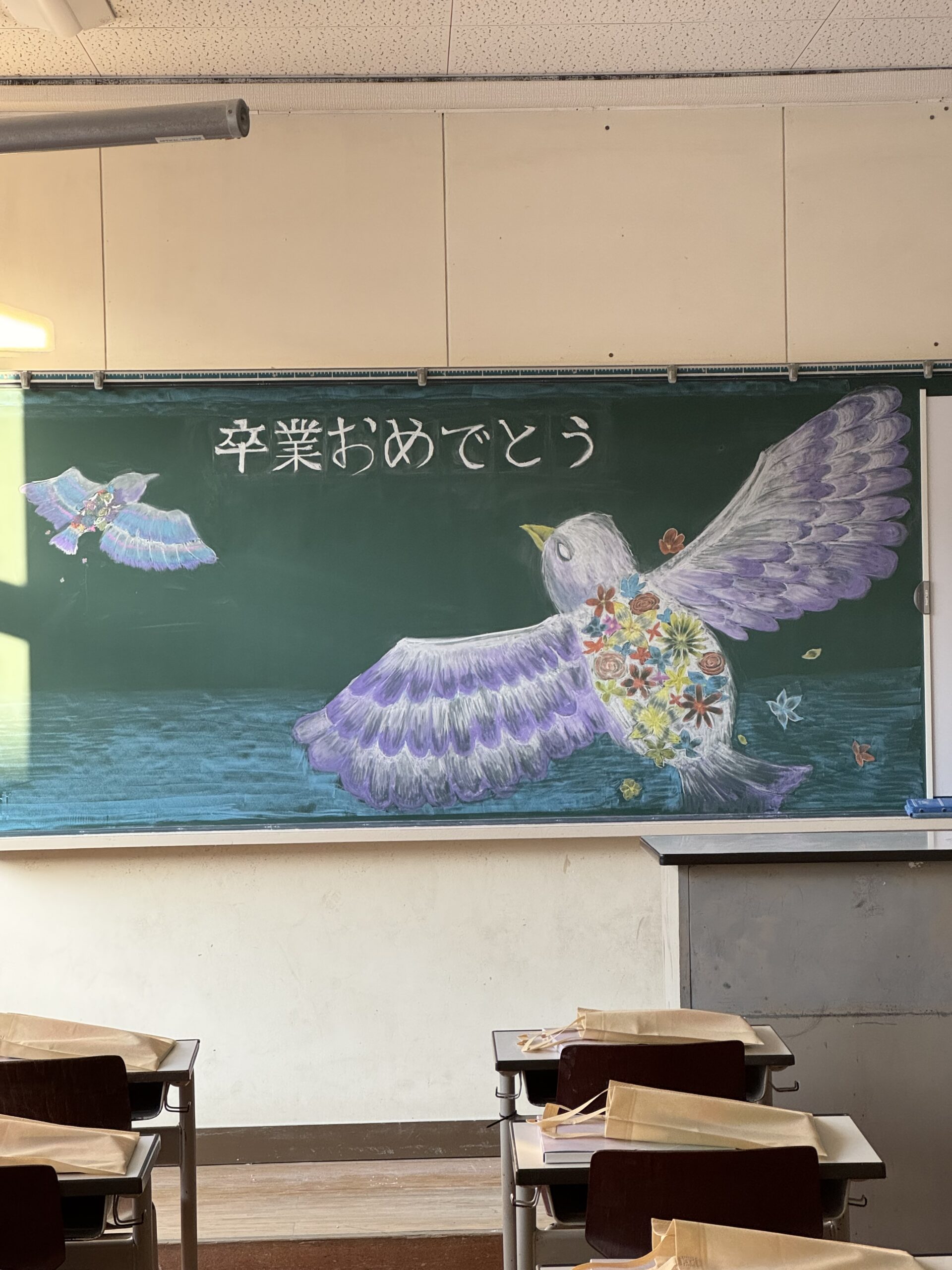 卒業生の各教室には生徒による黒板アートが描かれています。