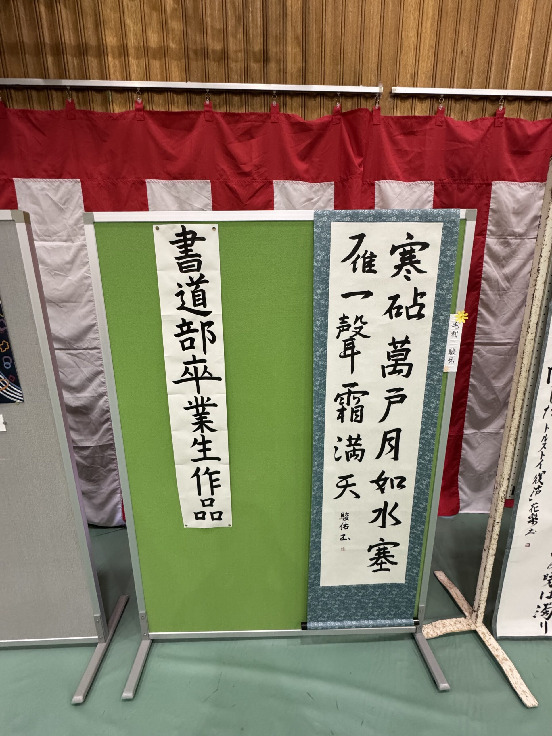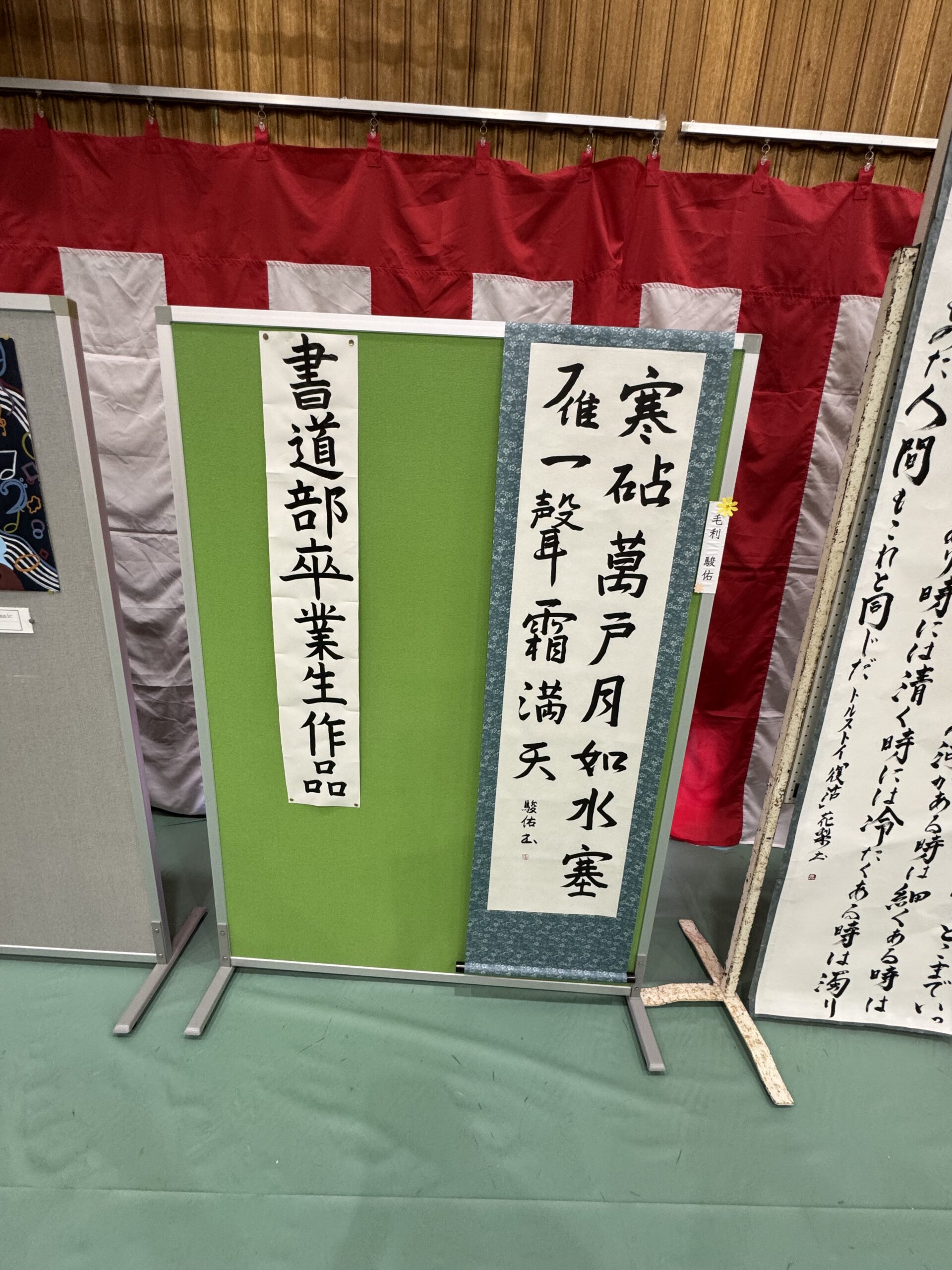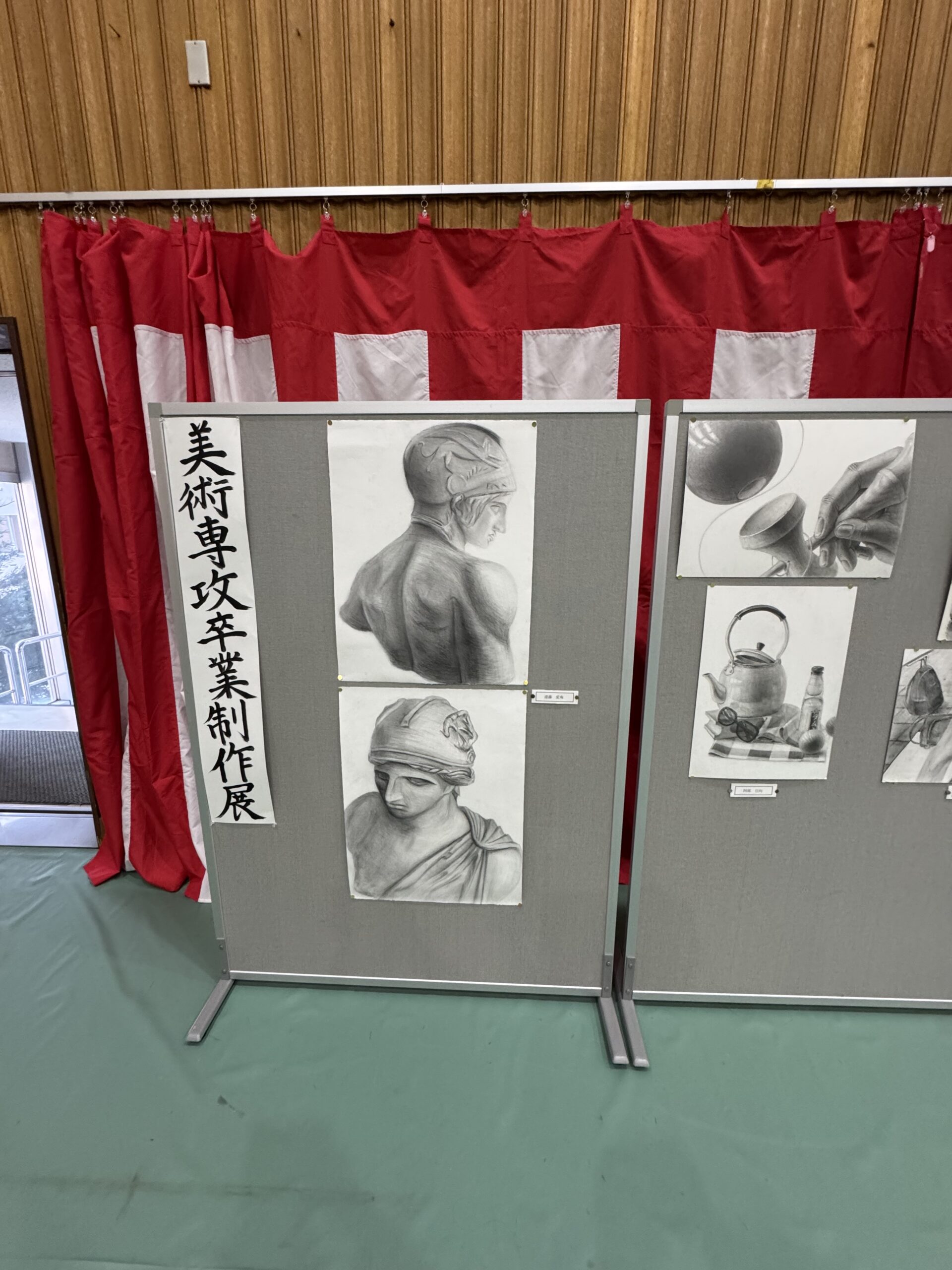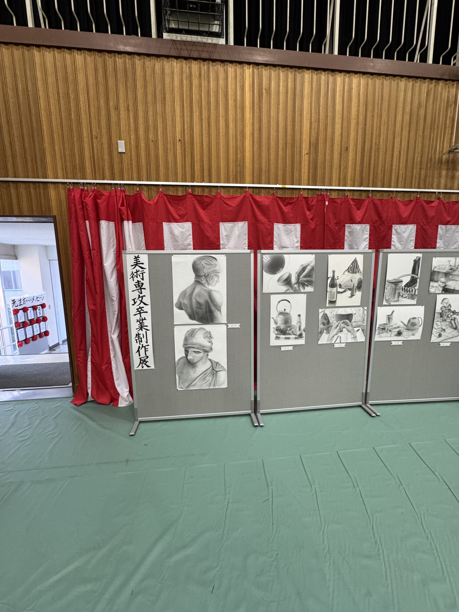 美術専攻卒業生、書道部卒業生の作品が卒業式の会場の入り口に展示されました。