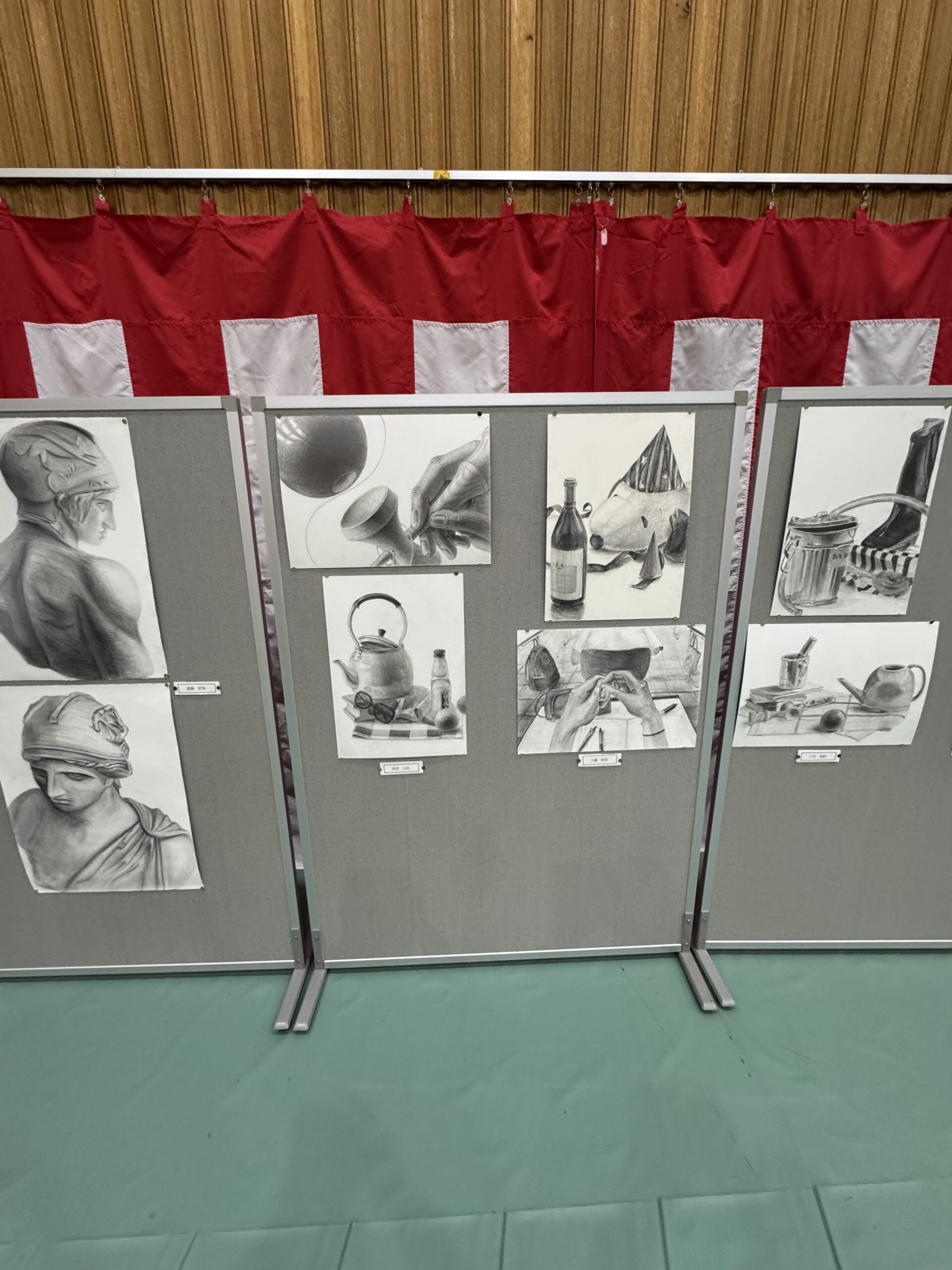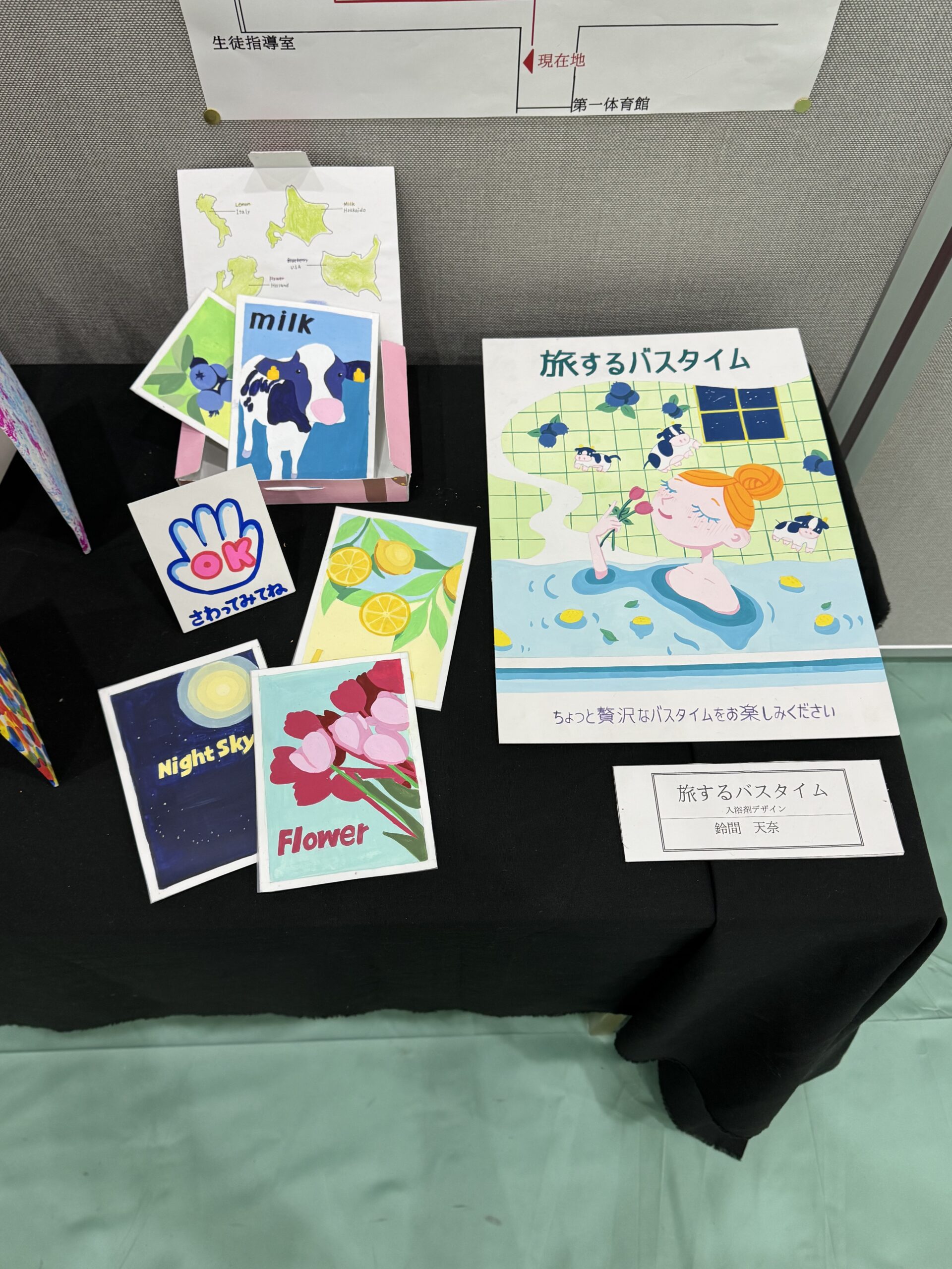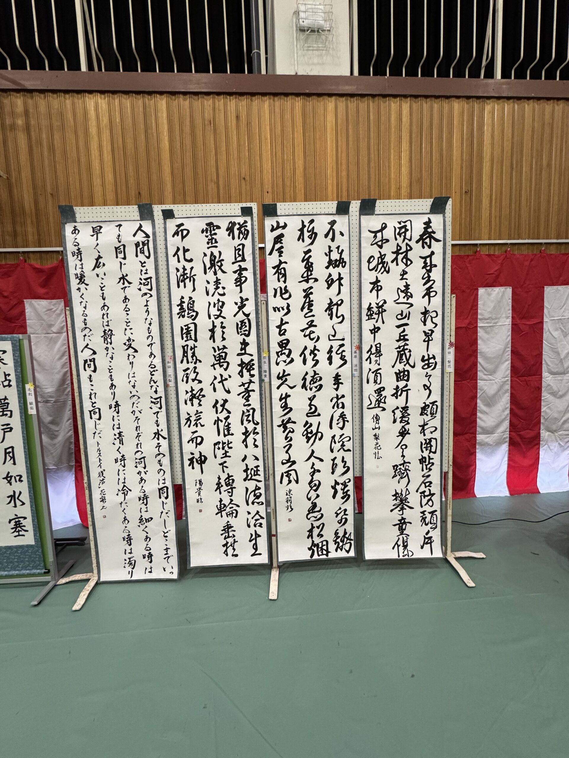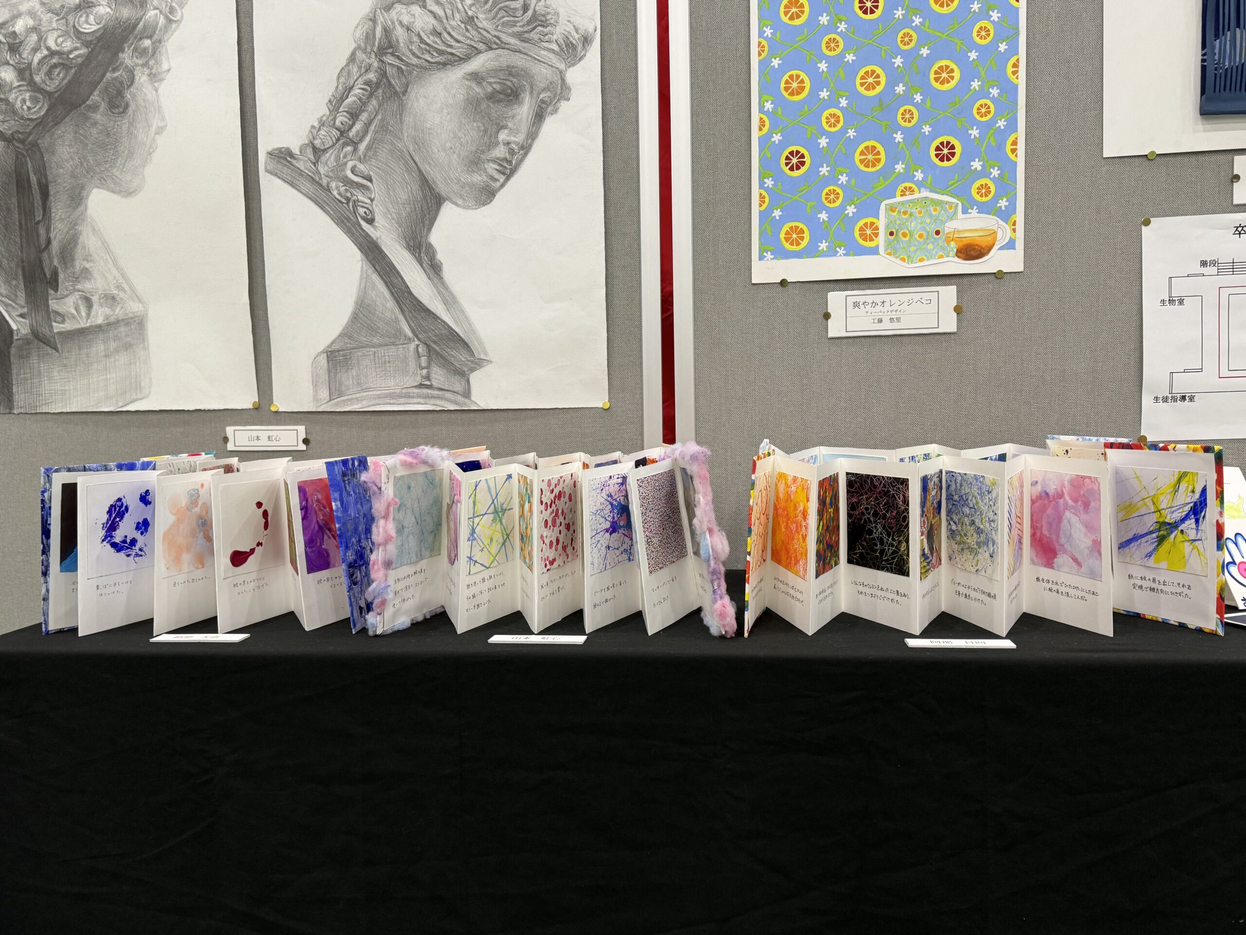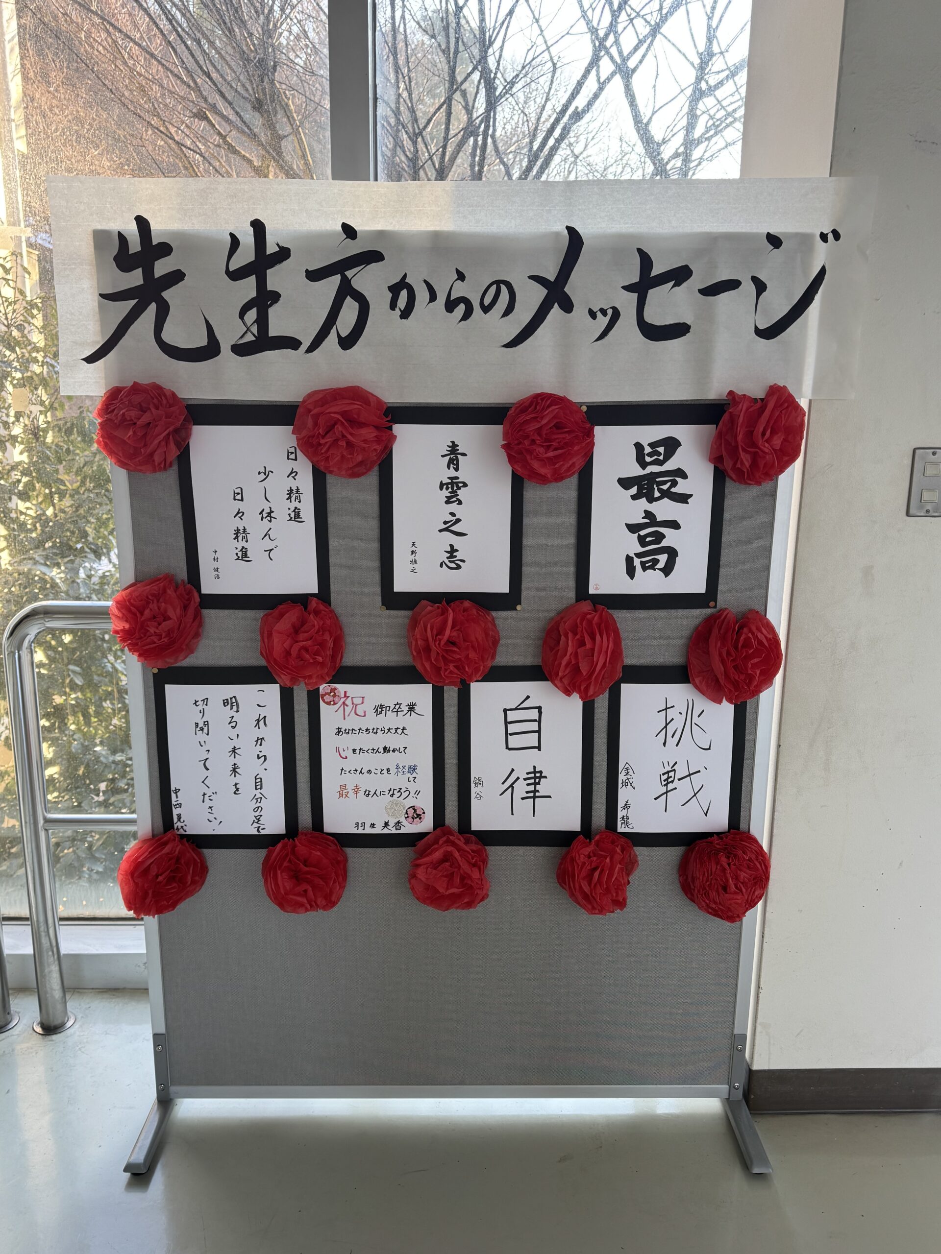美術専攻卒業生、書道部卒業生の作品が卒業式の会場の入り口に展示されました。